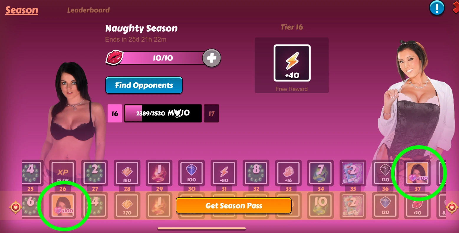 Naturally, the game has both a fancy battle pass and the ability to buy game currency for real money, but it does not really affect the development of your character in terms of a harem. As an example, here is a screen where the heroine will open for a person with a battle pass just a little earlier than for a person without it:
