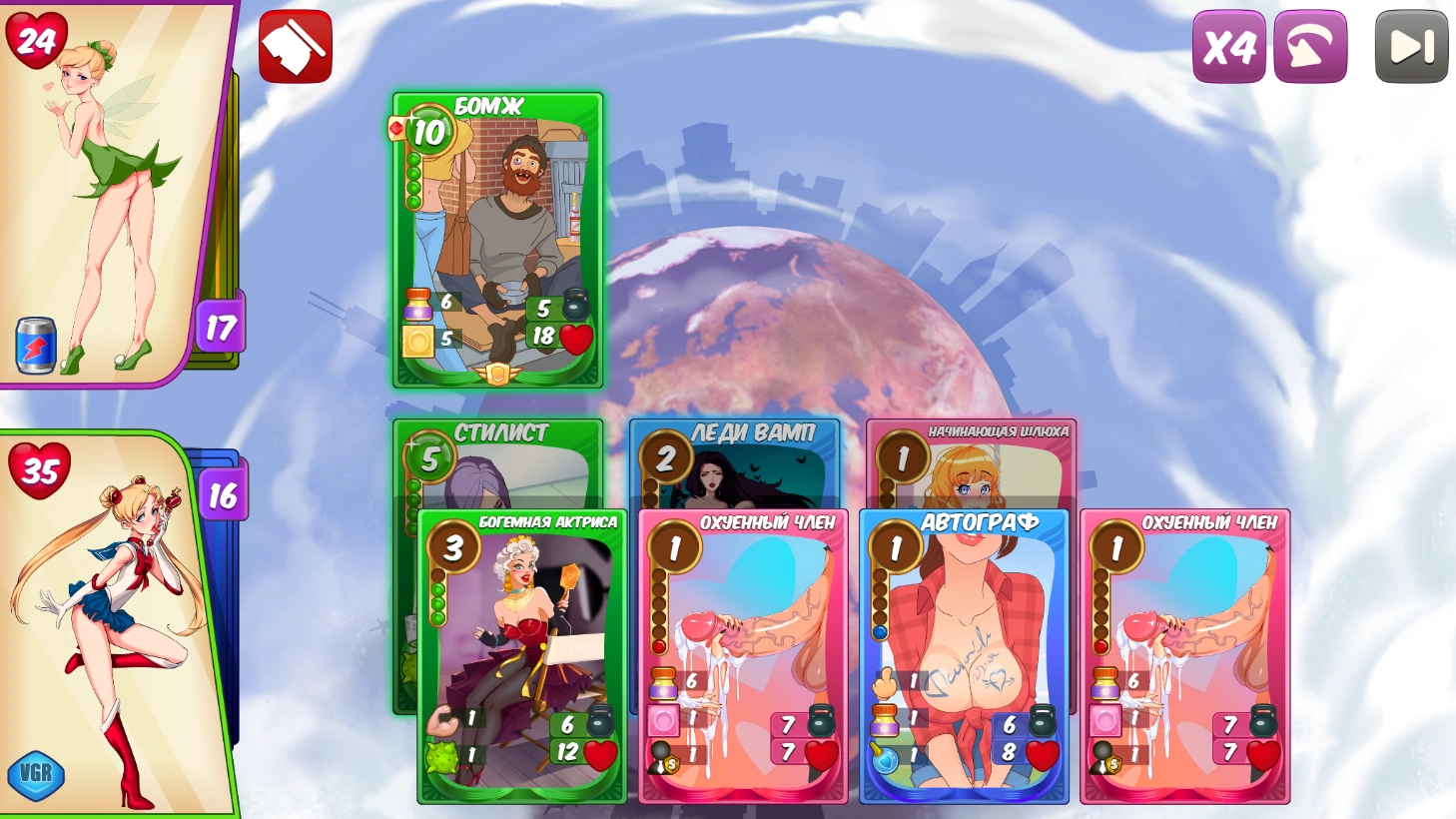 Each card is divided into two types, girl or item. This is one of the key mechanics that I personally really liked. The point is that in combat you can merge cards to get some nice bonuses and advantages in combat. A simple example of such a merge:
