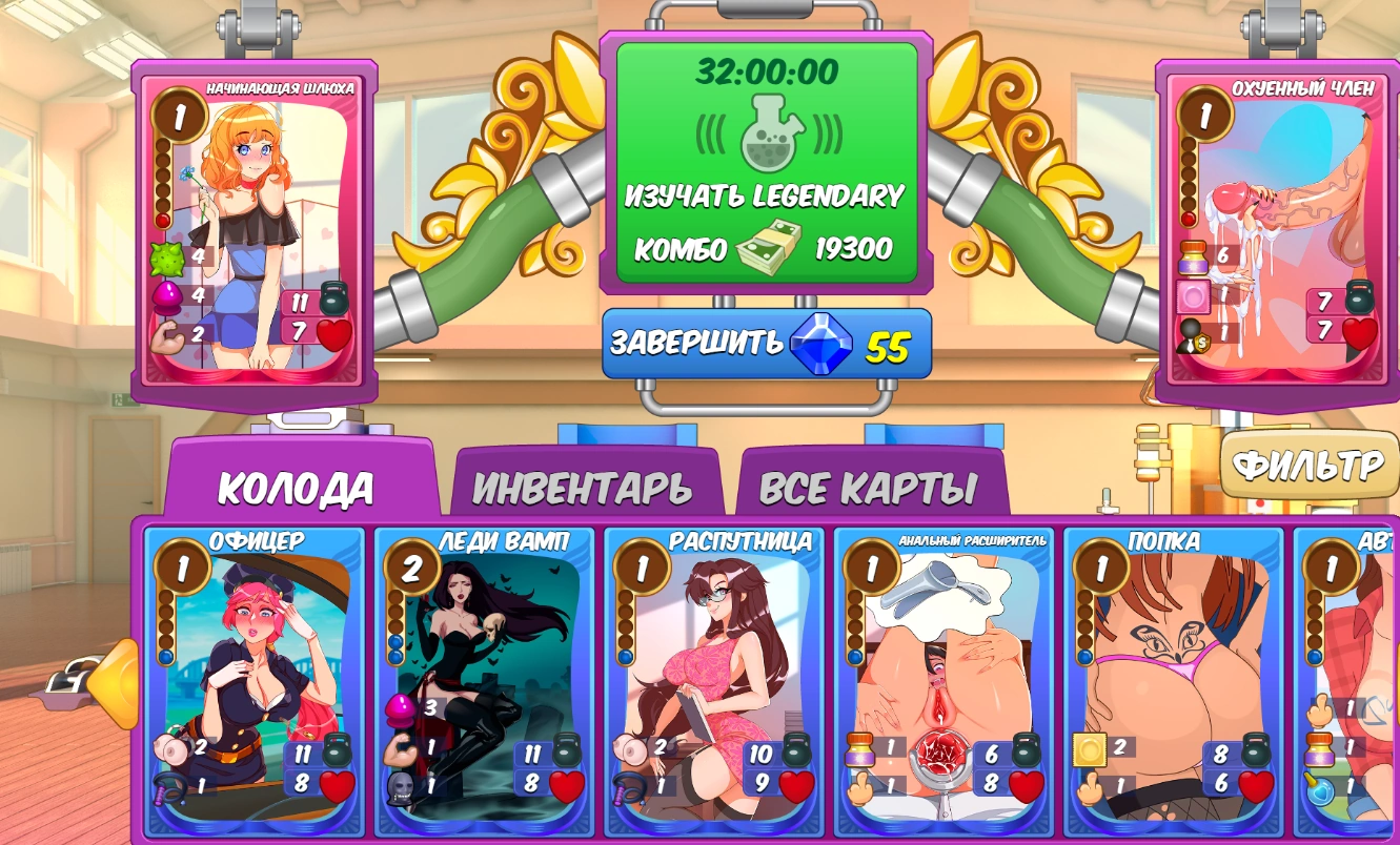 It’s all about the local character development system. There are three currencies in the game – bucks, Viagra, and donated crystals. Bucks are needed mainly for the study of combinations of the subject + girl, you need them a lot, the girls themselves are also very much, plus the process of studying combinations takes a while, from 8 to 32 hours. Agree, such a long learning process puts an end to fast learning tactics with card fusion on the battlefield. Ah yes, the bucks – they are quite scarce at first. Bucks can be obtained for victories in the campaign, as well as to get them from the chests obtained for victories in the arena. The speed of opening the chests also varies from 1.5 to 24 hours. To make the bucks in excess – you need to close at least one episode of the campaign to the end, in the future it can farm it indefinitely.