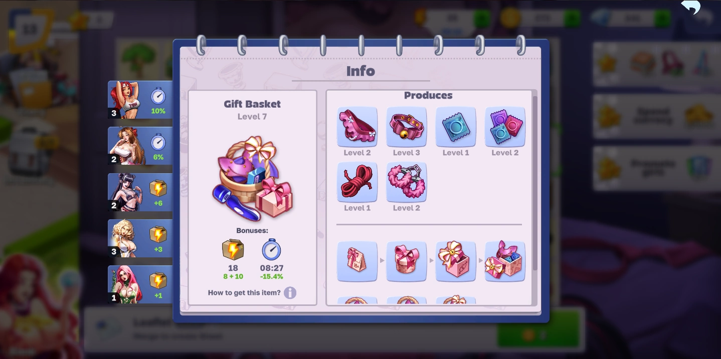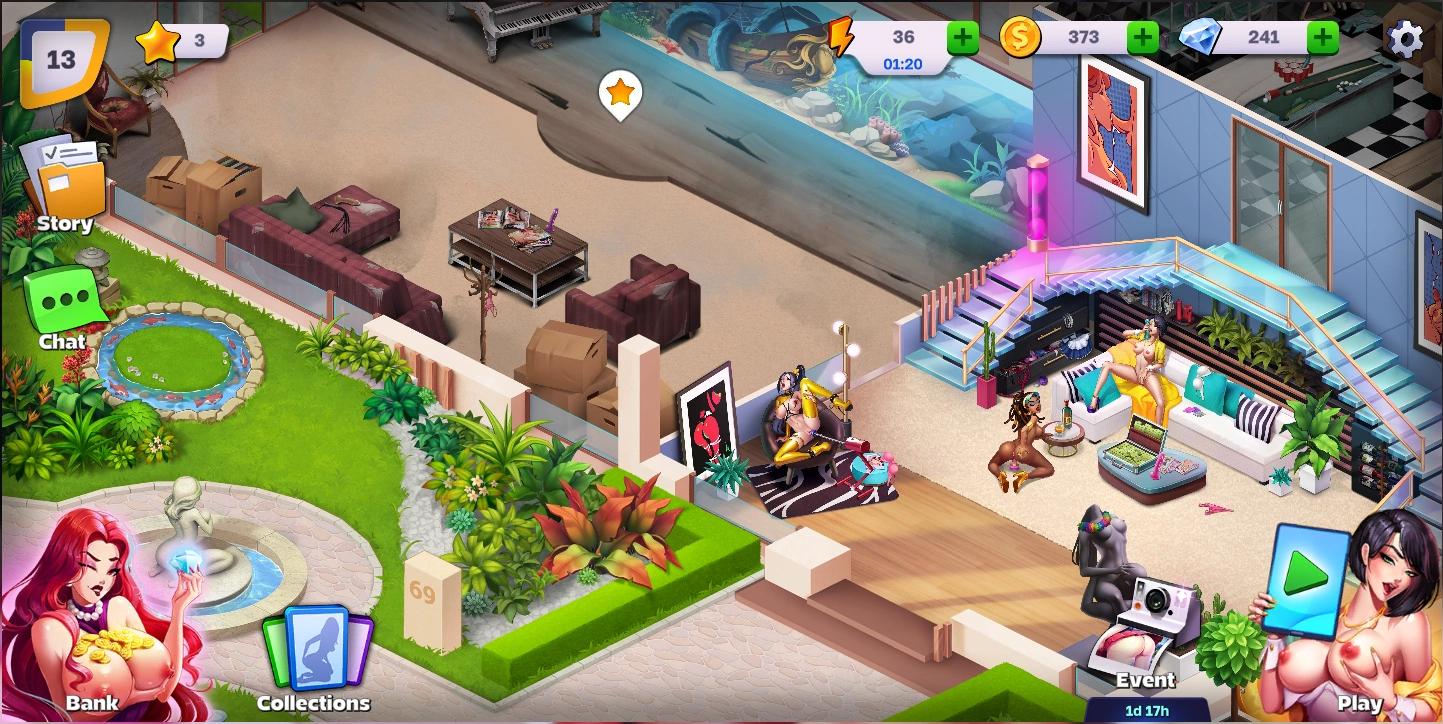 The player has only 3 types of resources – energy (spent on spavn items), gold (spent on lootboxes and on increasing the level of girls) and diamonds – local donate currency, you can spend on almost all actions in the game. Diamonds in Horny Villa can be obtained by participating in game events, for which the game is a definite plus.
