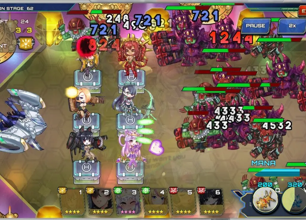 The game itself is a simplified Tower Defense (TD), in which instead of turrets – your girls. Each girl belongs to one of 4 classes (shooter, support, melee (melee), artillery), has her own abilities and a talent tree. Unlike the classic TD, you will have to raise the girls’ levels not during the battle, but in the lobby.