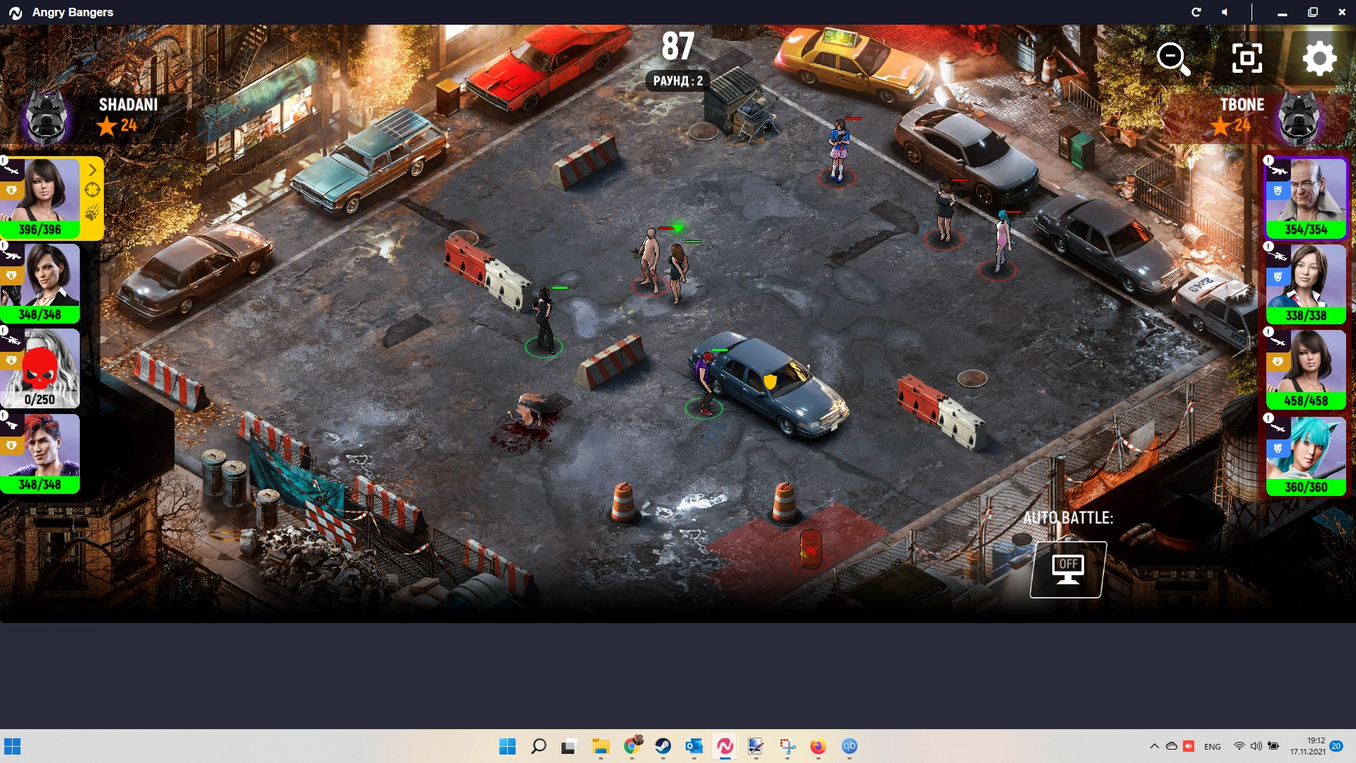 PVP in the game is also executed…well, controversially in some moments, but normal. Players in Angry Bangers fight with each other, not with the bots. The heroes’ pumping system motivates players to go to the arena even with the most lowlevel characters, which ensures constant pvp activity without having to wait for their opponent. It’s possible that some battles are indeed fought by bots, but overall I got the feeling that I was playing with real players. Some players just autobattle and walk away. During autobattle AI tends to be very stupid, does not take advantage of your chosen gang and often loses because of this.