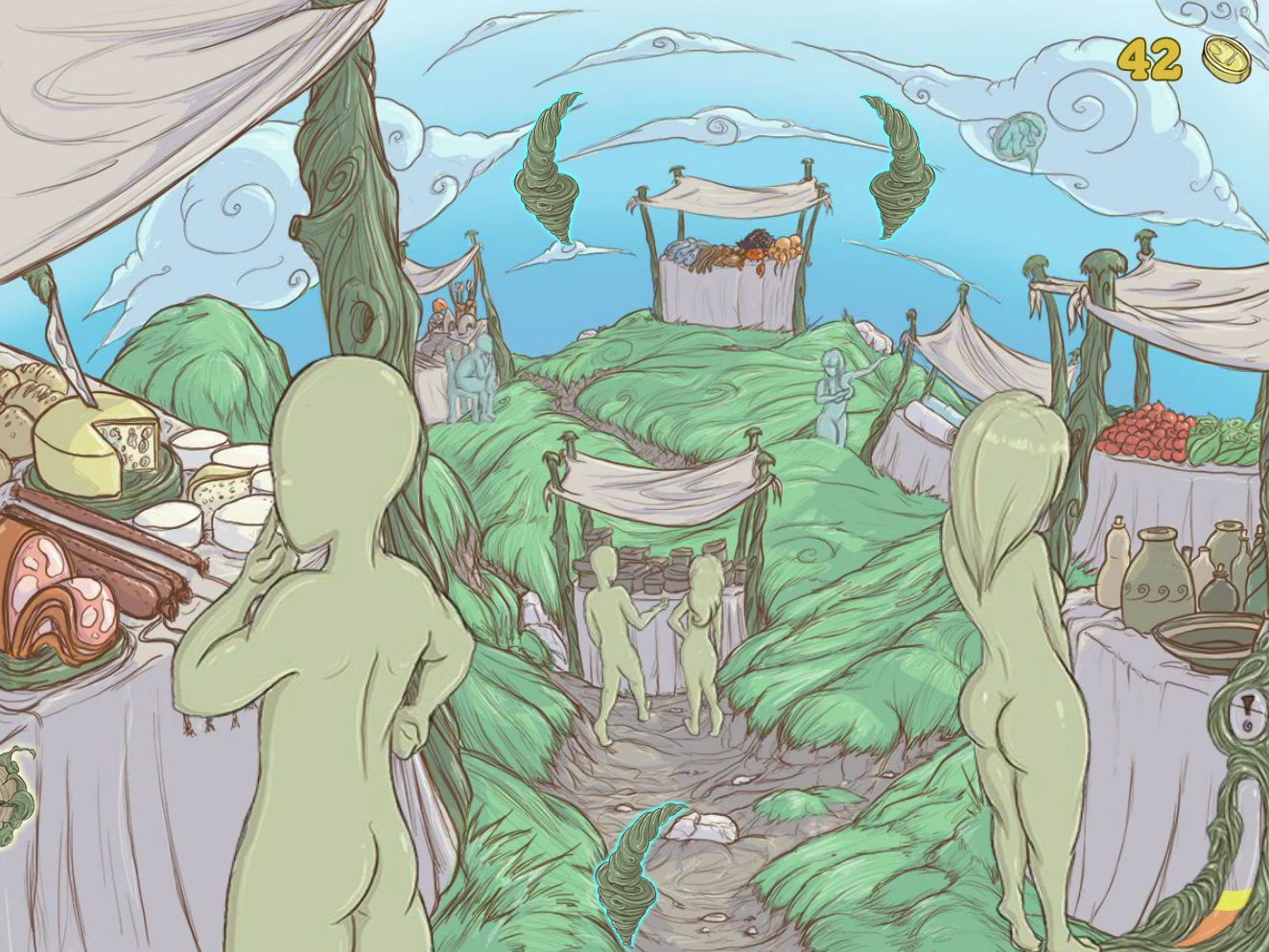 At first, Elana is only able to whisper dirty rumors to the inhabitants that “here is nice to touch,” but the leveling of skills expands the methods of interaction with the public.