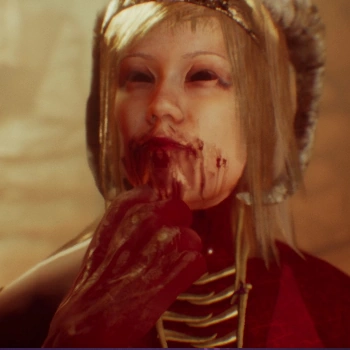 To actually access this ending, once the requirement has been accomplished, travel to Chapter 4 in the Goddess’s Cathedral like most other endings. But instead of climbing up the stairs to the 2nd floor, approach the front altar like area with the massive painting of the Red Goddess.