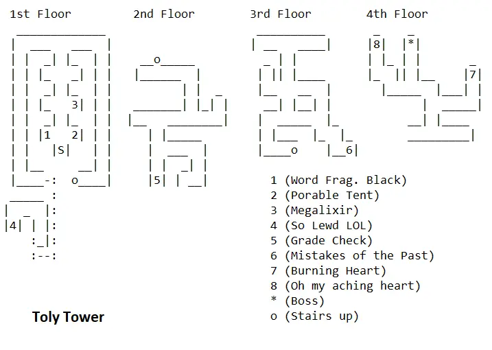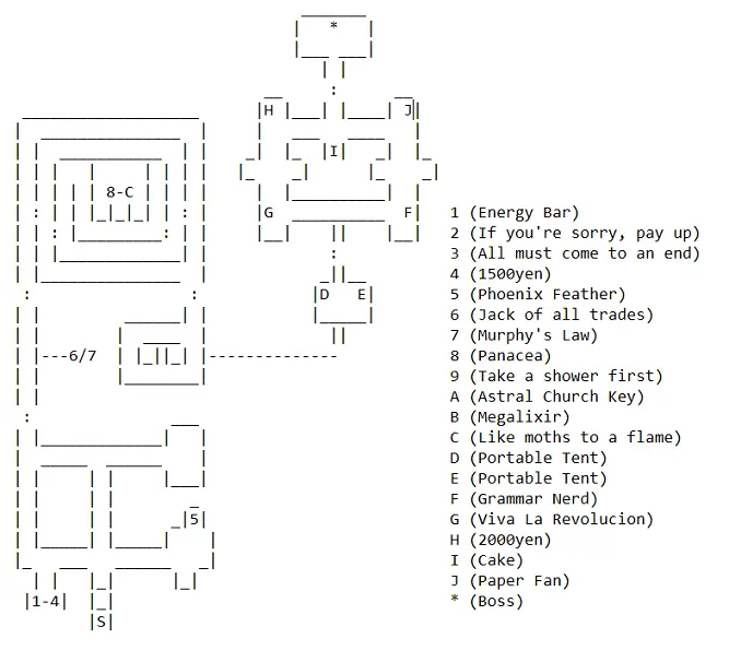 (There are also various hidden items throughout the game that can be obtained by examining objects. I’m not sure if I want to include them since they are minor and insignificant items.)