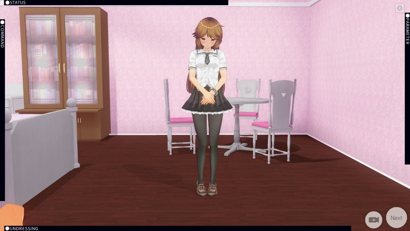 During normal cutscenes, right clicking on the dialogue box will hide it. Left clicking anywhere should bring it back up. This can be useful if you’re framing a screenshot or the like. Your scroll wheel allows you to zoom in and out, as you’d expect. Clicking and dragging on your scroll wheel allows you to pan the camera up, down, left, or right. Clicking and dragging your right button lets you pivot the camera in pretty much any way you want. In some cutscenes, this will instead swivel you around the main girl rather than pivoting the camera. Given COM3D2 is an eroge, it’s not particularly shy about low angles and you can get as many eyefuls as you want. Chirarists rejoice! \o/