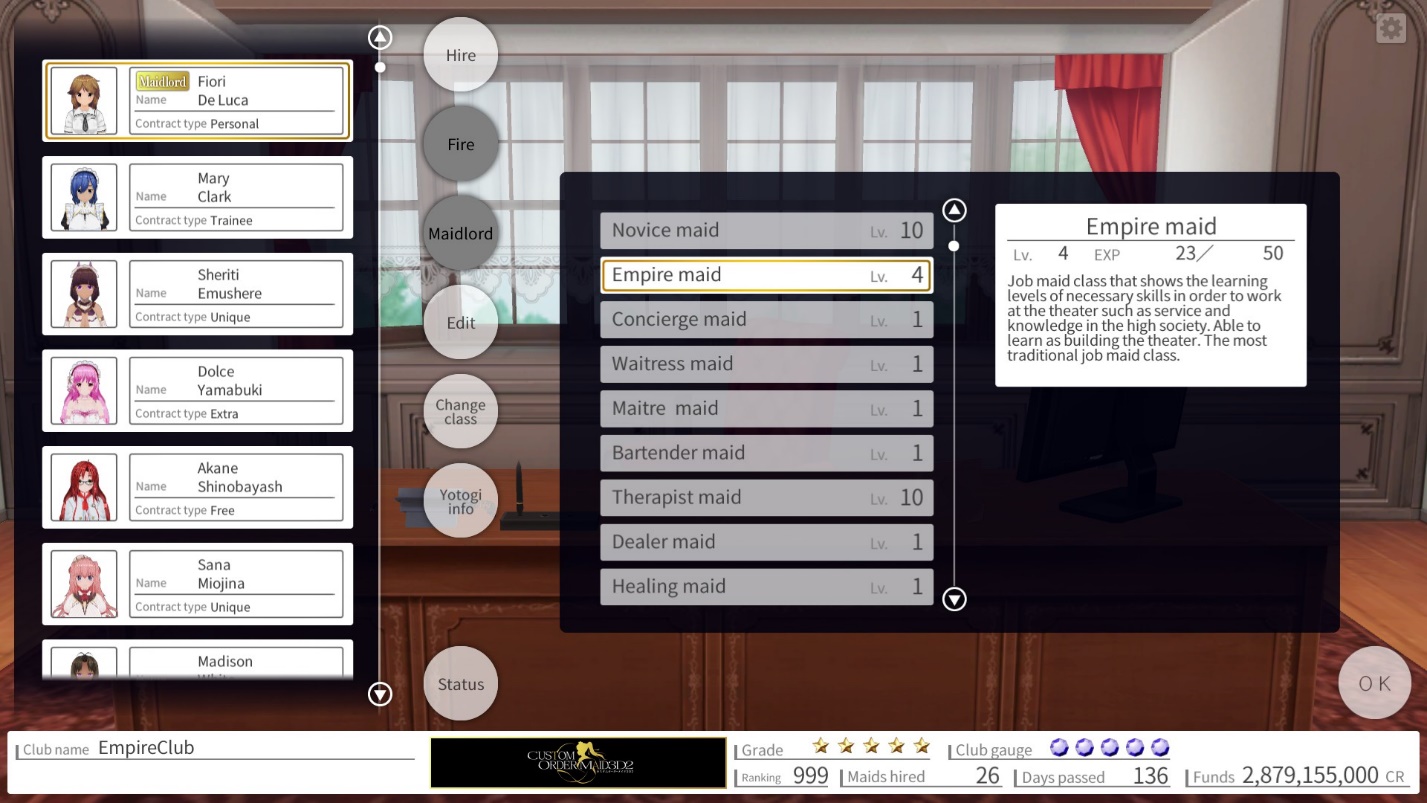 For the purpose of this primer, there are four different types of maids: the three main girls, extra maids, unique maids, and custom-ordered maids (girls hired through Maid Admin > Hire).