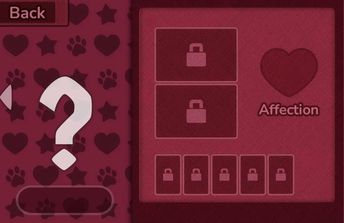 In this menu you can rewatch every NSFW scene you have unlocked as well as view the affection that a character has to the player