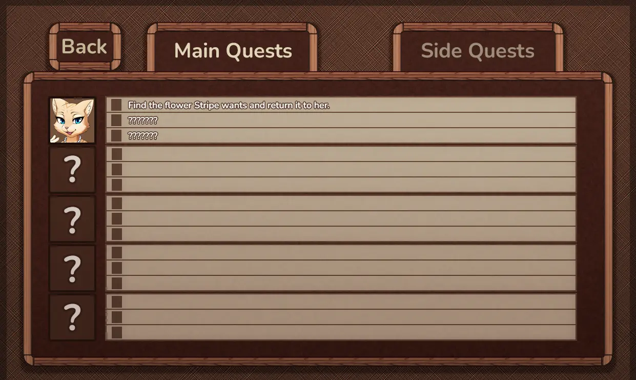 Under this menu you can see the current quests you have accepted as well as the sidequests.