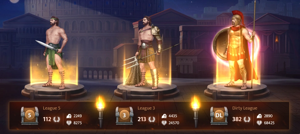- The difficulty of fights in Colosseum depends on the maximum league reached in the Tower – don’t be in a hurry to move to a high league if your opponents in Colosseum don’t allow your deck to quietly move at the maximum multiplier.