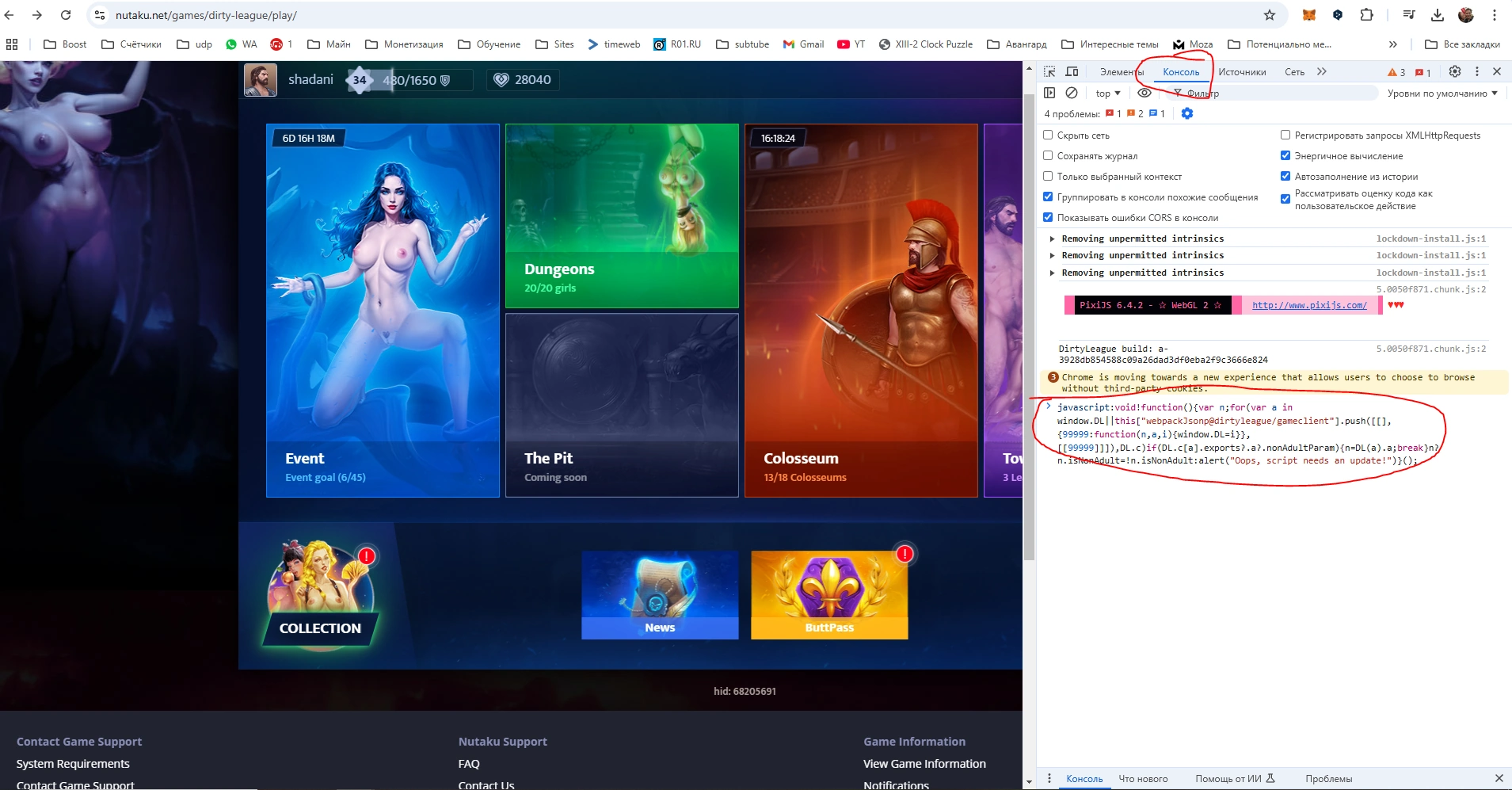 javascript:void!function(){var n;for(var a in window.DL||this["webpackJsonp@dirtyleague/gameclient"].push([[],{99999:function(n,a,i){window.DL=i}},[[99999]]]),DL.c)if(DL.c[a].exports?.a?.nonAdultParam){n=DL(a).a;break}n?n.isNonAdult=!n.isNonAdult:alert("Oops, script needs an update!")}();