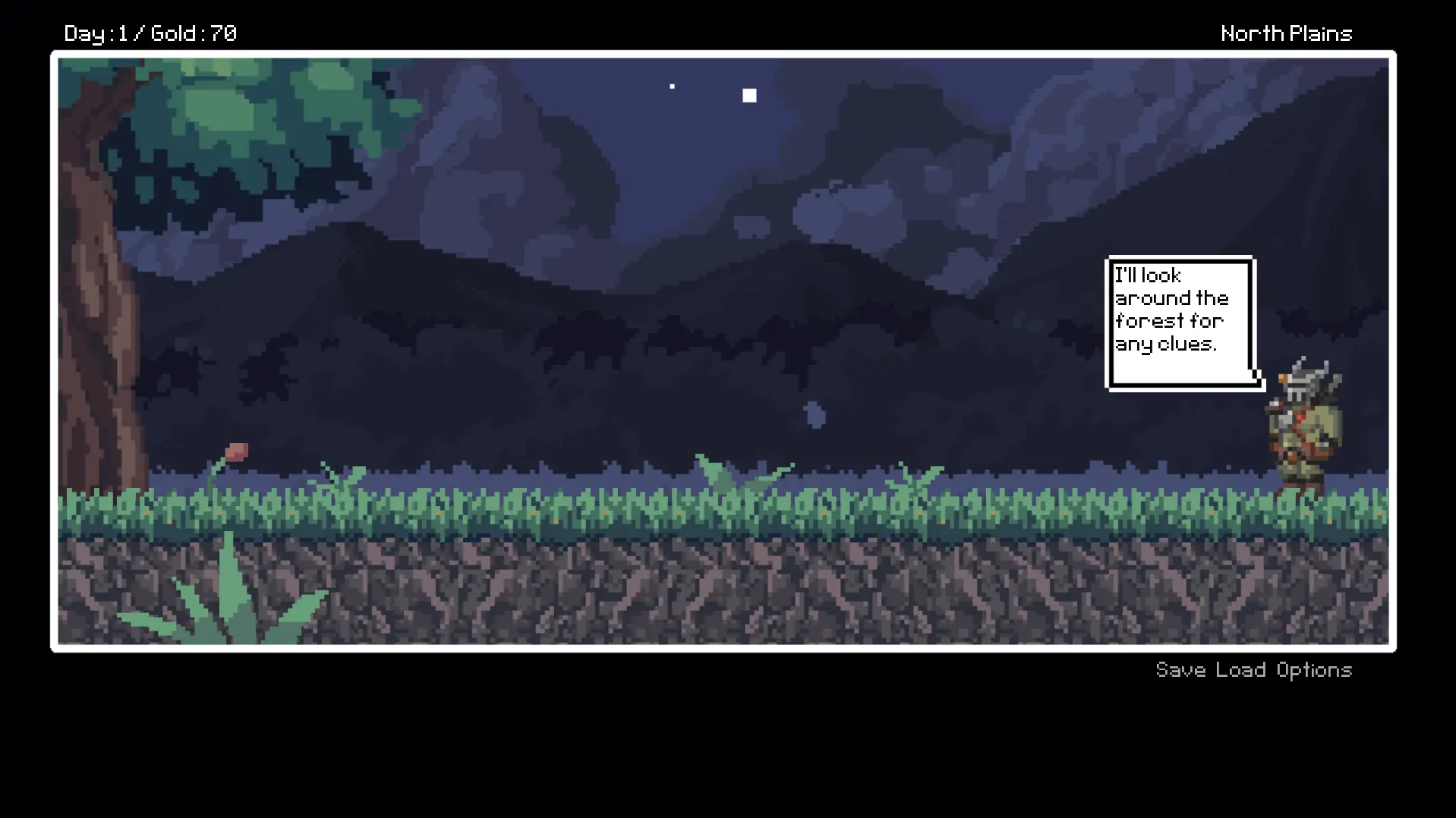 Backtrack out of the mine and notice how it’s gotten dark outside. Not much time left, but we’ll get our clues before the night ends. Leave the forest and back to town. (If you can’t recall, it is west to the first junction, then north, and west until you are back. Head north through town and out the west entrance to the forest on the other side.