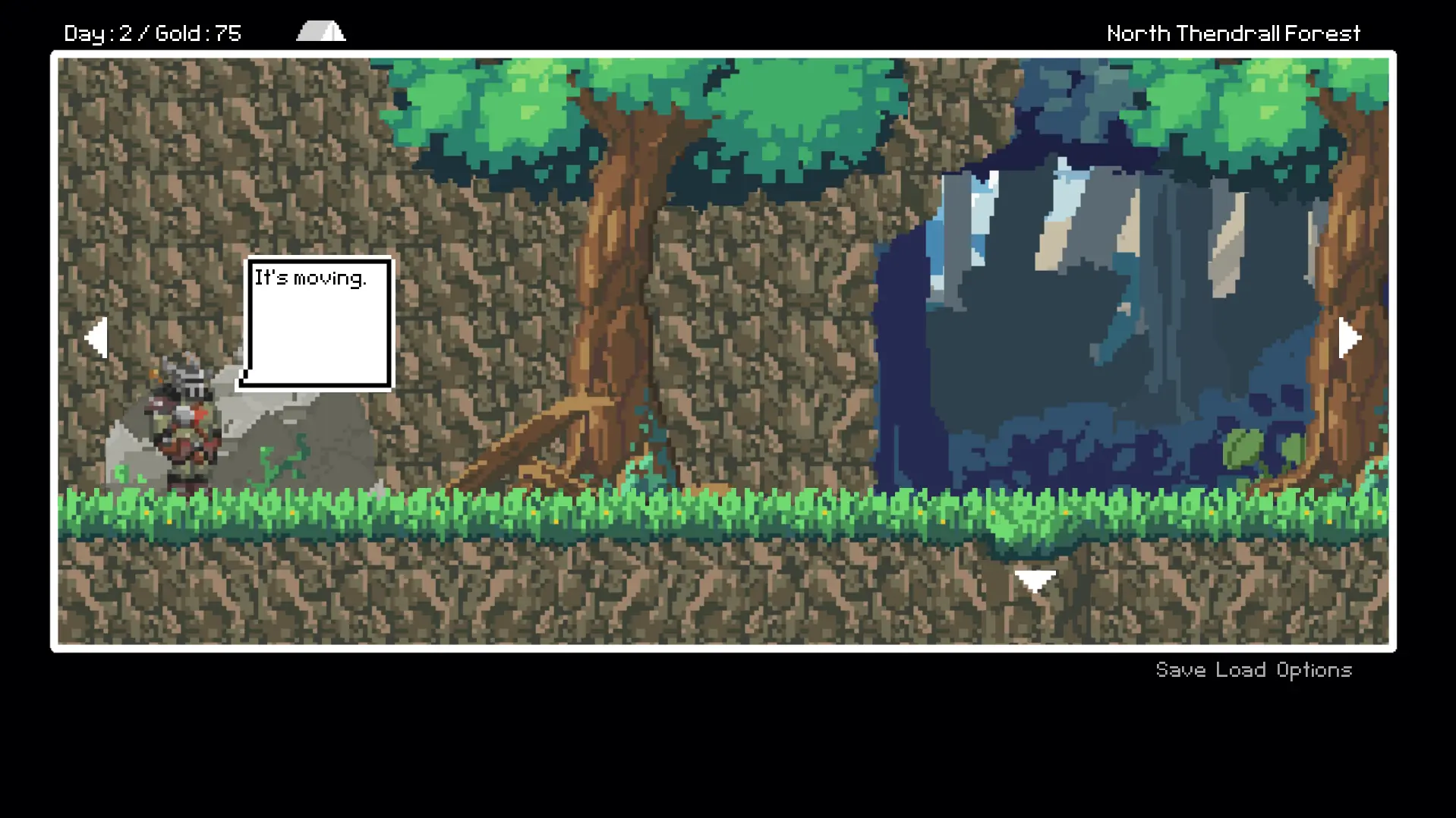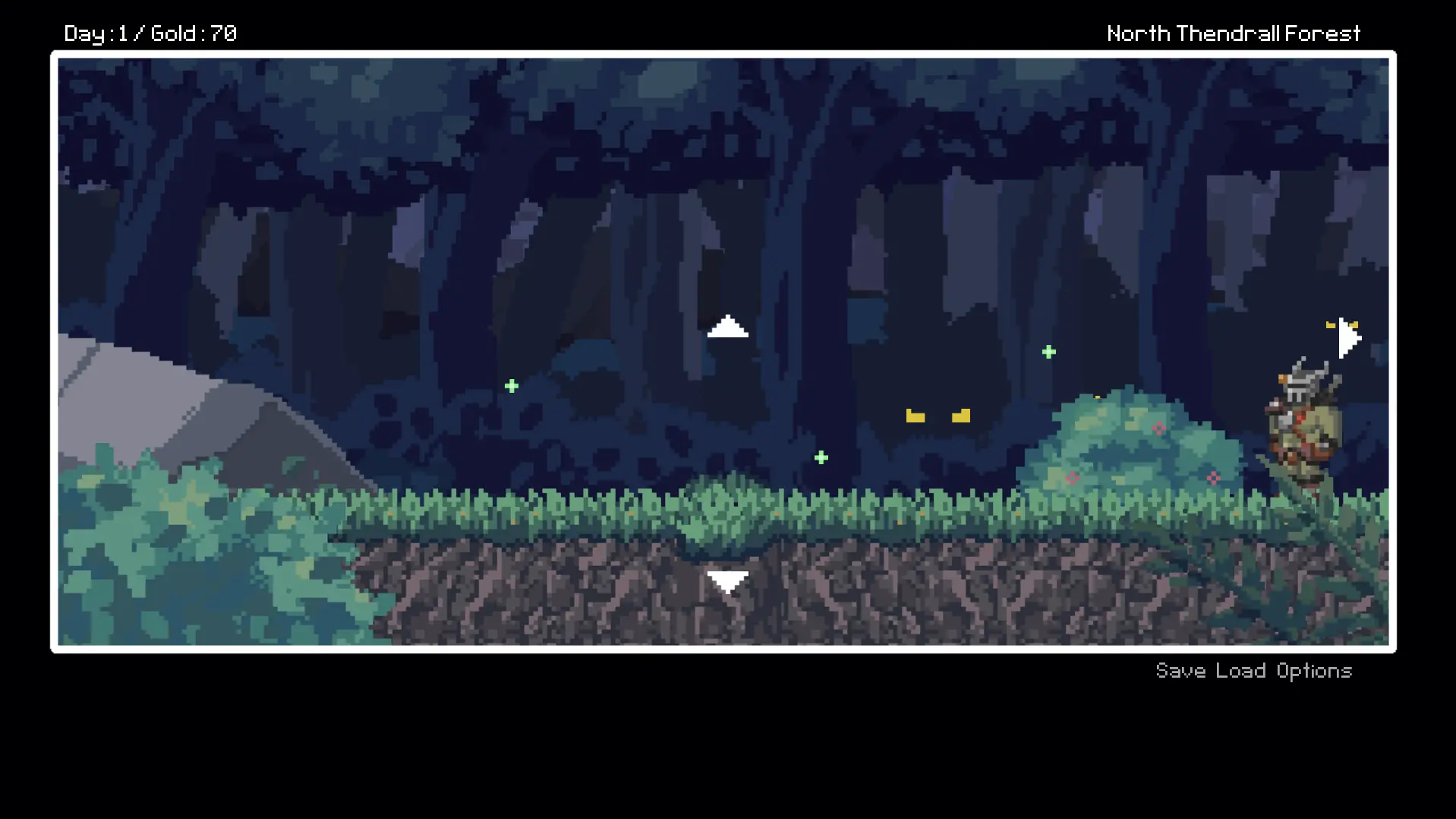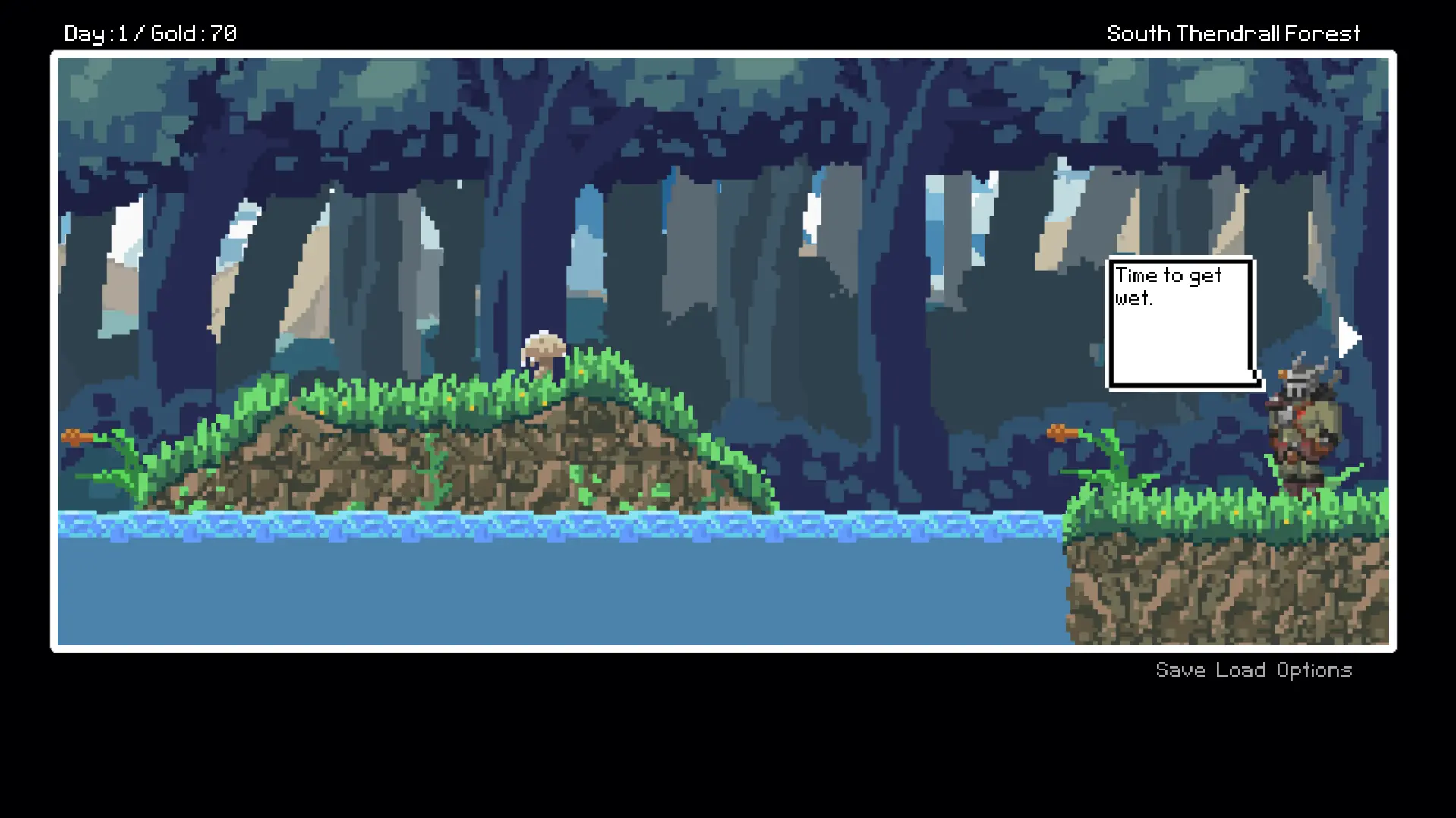 Head on down from the first screen and to this junction. It goes west to a river and east to a mountain. We’re gonna head east first. On the next screen you’ll notice a branching path go north but don’t bother with it today, that’ll become relevant tomorrow. Keep heading west to the river.