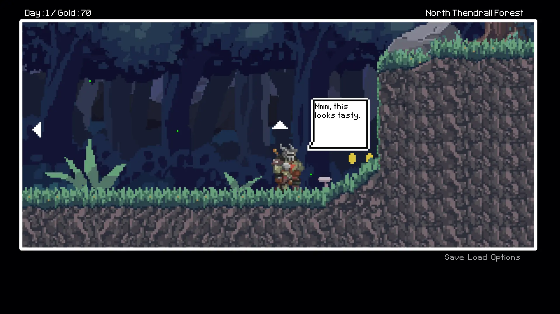 We’re at the end of the forest and we’re gonna be going up into the mines from here. Nab that mushroom on the far-right of the screen and let’s get going!