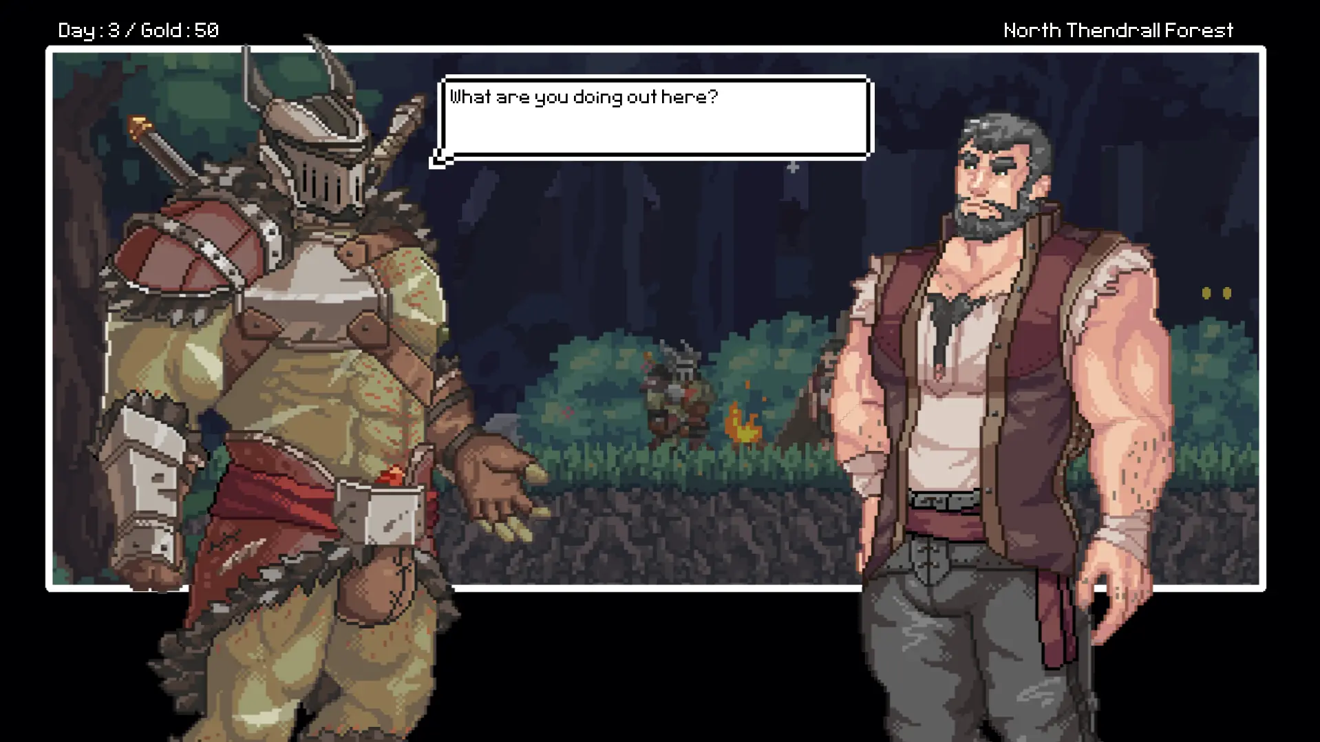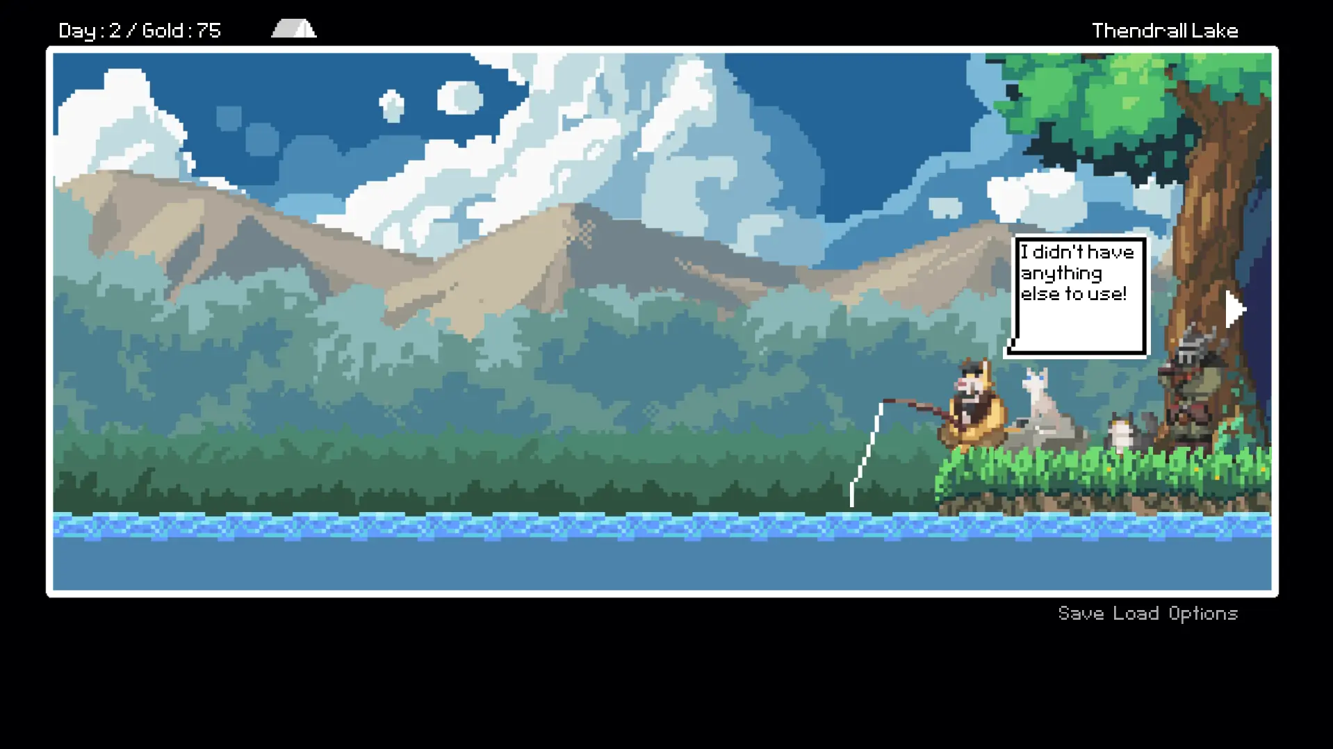Starting Day Two, go instead and exhaust all Lozran’s dialogue again, turning in all quests you have on hand. When offered the reward for the ring, turn it down. (Note: I am not sure if this affects his affection for you, but money is not a problem in this run, so there is no harm in losing out on the cash.) Finish out the day by getting the Fisherman’s quest down and collecting Gerald’s bag,. Head back to the Inn and turn in the Fisherman’s quest before camping outside again.