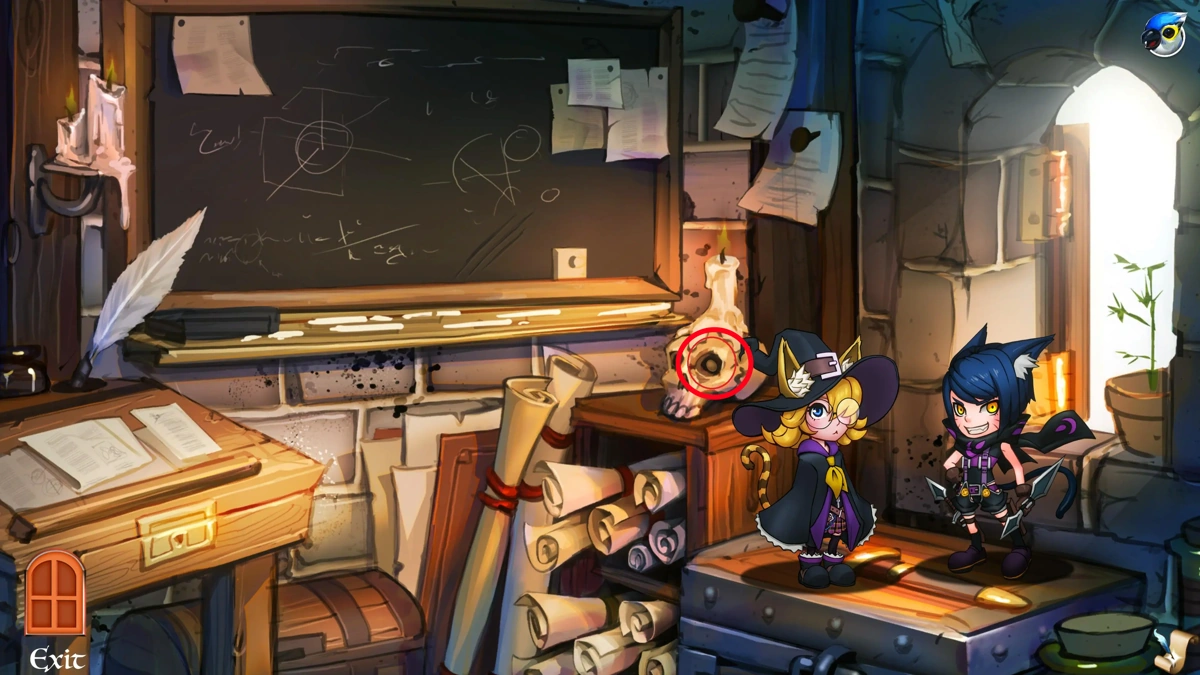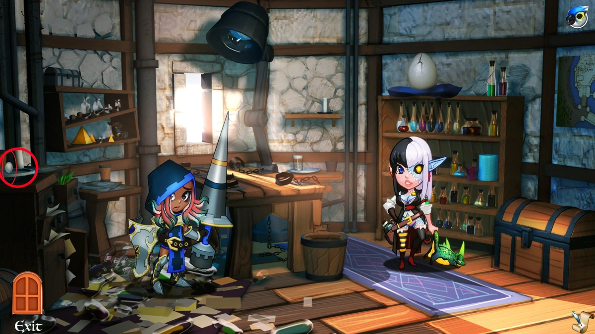 One of the hardest to find! Alchemist lab, overlapping with the base of a potion bottle on the right-hand shelves.