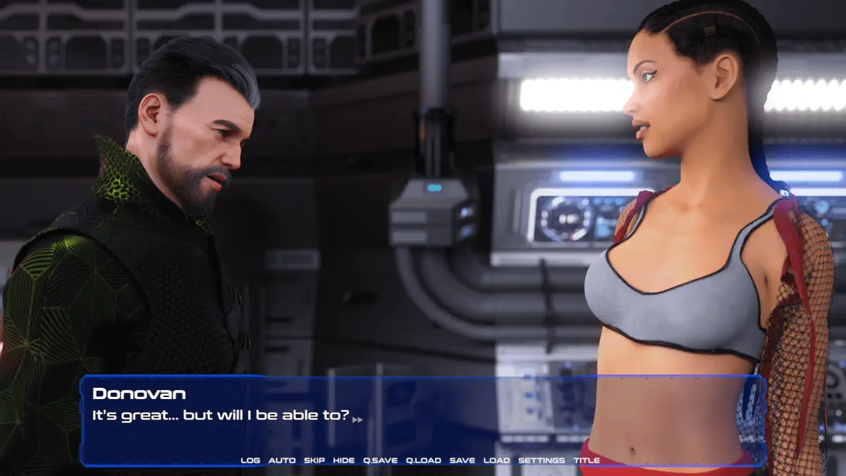 If in the shooter minigame where you saved the cargo ships from the pirates you destroyed at least 350 missiles you can see how Shodan spanks Donovan. With at least 400 missiles destroyed you will be able to see Donovan give Captain Dyce a blowjob. With at least 500 missiles destroyed you will be able to enjoy a full sex scene between Donovan and Dyce.