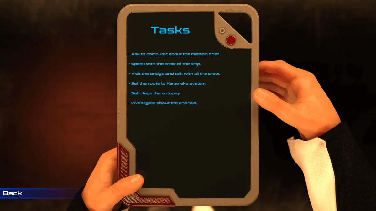 In your quarters you can see the tasks you need to do to complete this stage of the game, in this screen only the main tasks appear, secondary tasks will not appear.