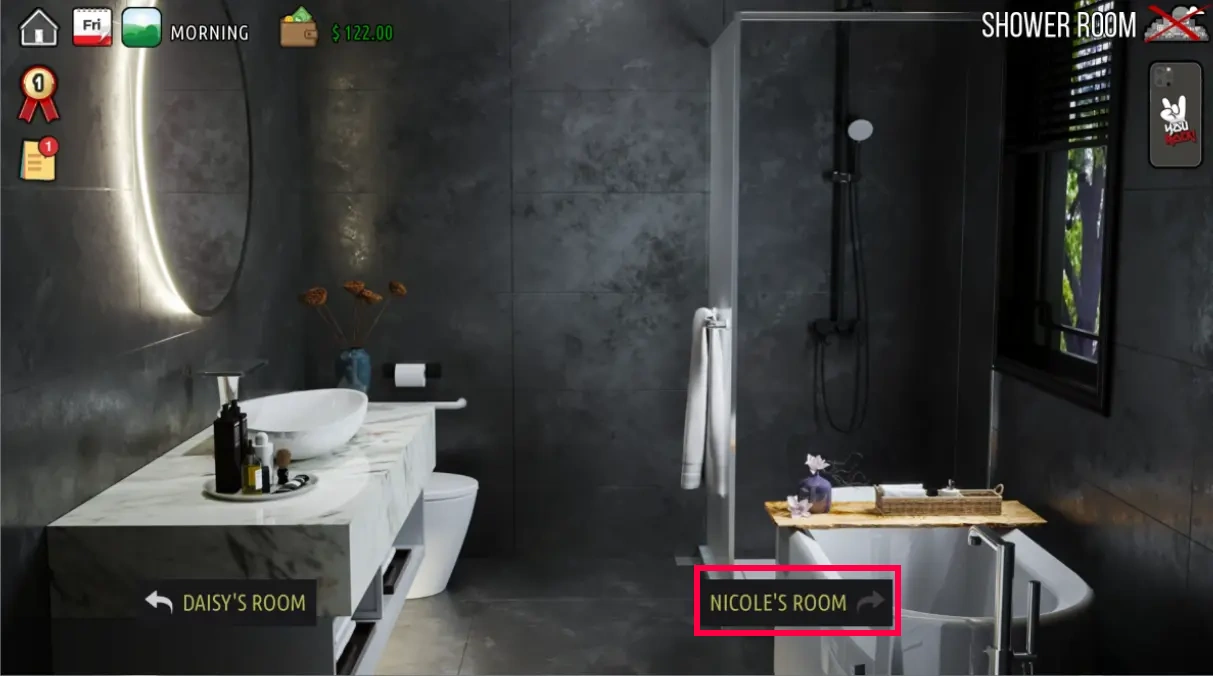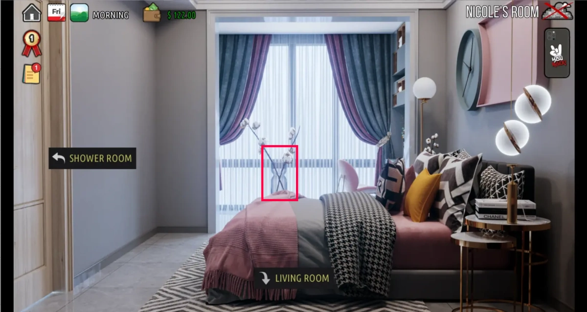 So to get this, it’ll be after the party at the school, you will have to talk to Nicole and then once you leave, you can go to Daisy’s house to have a great moment with her, after encountering Nicole in Daisy’s room, you’ll be able to explore, Don’t click Living Room as you won’t be able to go back again, Click Shower room and then Nicole’s Room and you’ll be able to click the vase in her room.