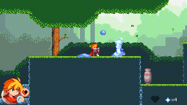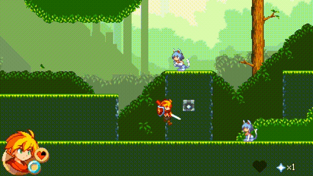 The player character has a ranged weapon, too. It looks like a water gun. Discipline your cats and other hostile creatures by pressing the attack button while pressing Up on your control stick/D-pad.