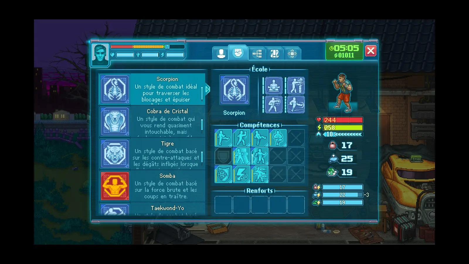 – A specific ennemy is too strong ! : First, remember to look at your oponent stats and skills. You can check it whenever you want if it’s a league opponent. If it’s a random encounter during your daily routine, do one more fight to check his skills, even if you loose the fight for this check. Note EVERYTHING : stats, passives, skills, etc. after this, look at your skills and school passives to find the perfect counter. For exemple : if you fight an opponent who use dodge and no block, avoid to use a school who counter block. Look if you don’t have an anti dodge option.If you really have nothing, go do some training : increase your stats, even those who wont help your school, then try again. Be sure you have all your health and stamina. And if needed maybe your employers have something usefull for you ?