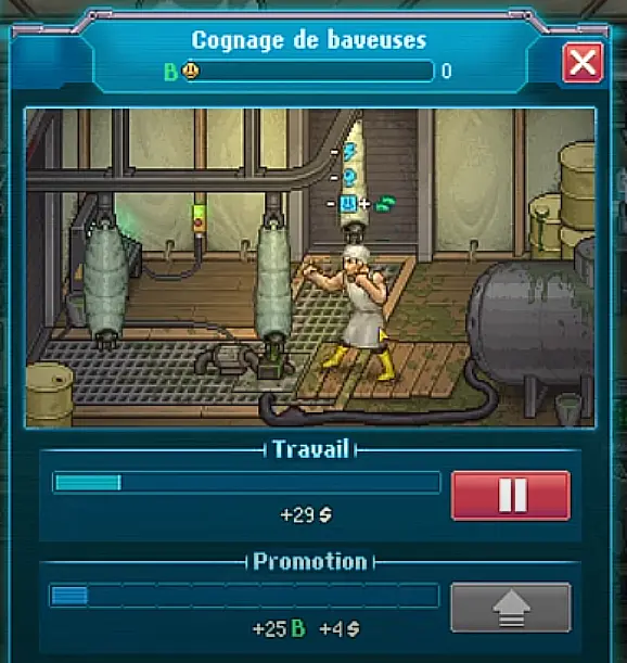 – Promotion gauge : click on the button when the gauge is filled. An event will be trigger. Complete it and you’ll be promoted, which means respect and better pay !