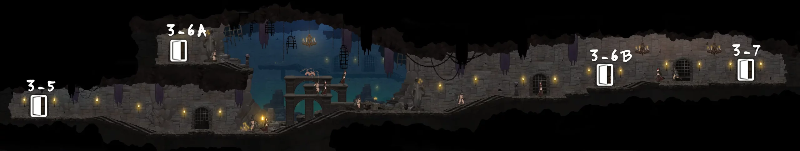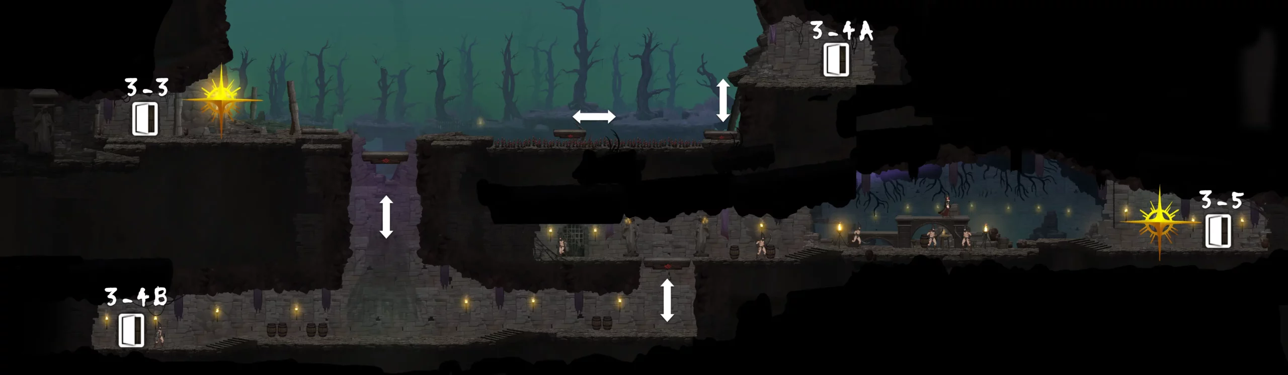 I’ve provided screenshots of the maps, there are 3 different stage settings, the church, forest, and ruins (numbered respectively)