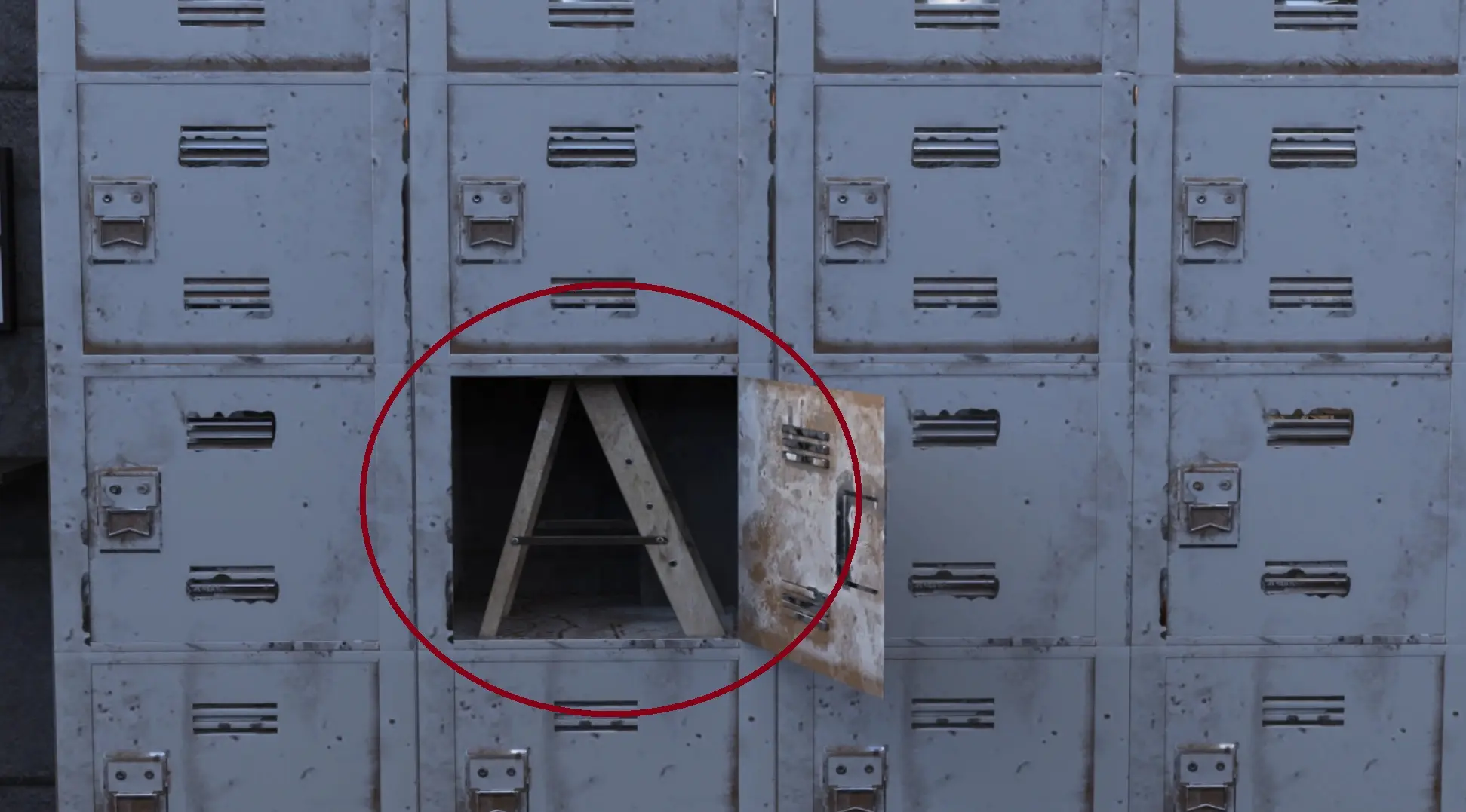 - Equip the key in your inventory, and open the (only) locker that can be interacted with (it’s the one indicated by the pattern on the lid of the blue barrel)
