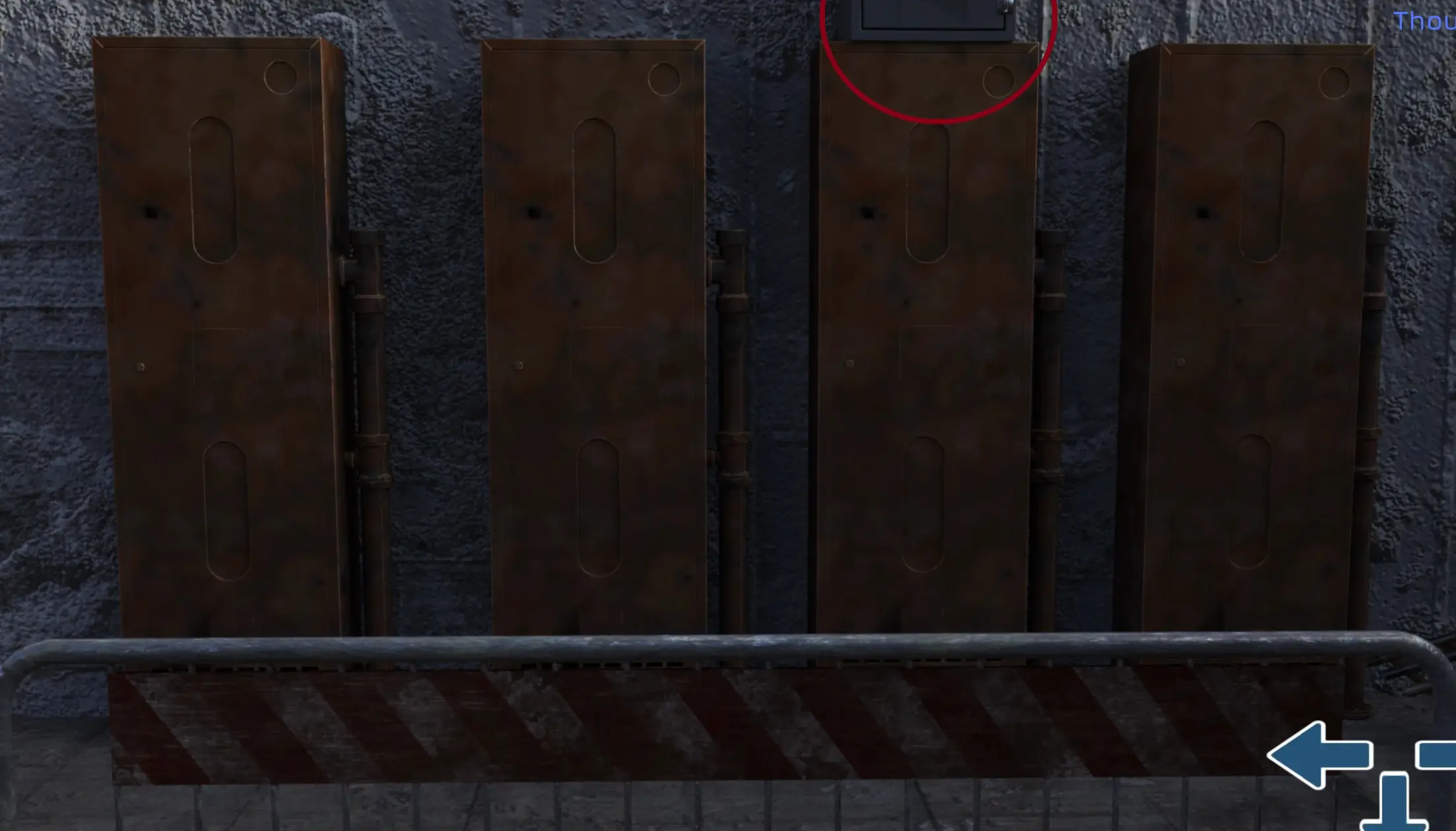 - After MC says he’ll remember the pattern. Go back twice, turn right, go up, turn right, go up, and turn right again. Click on the lockers twice to get MC’s thoughts.