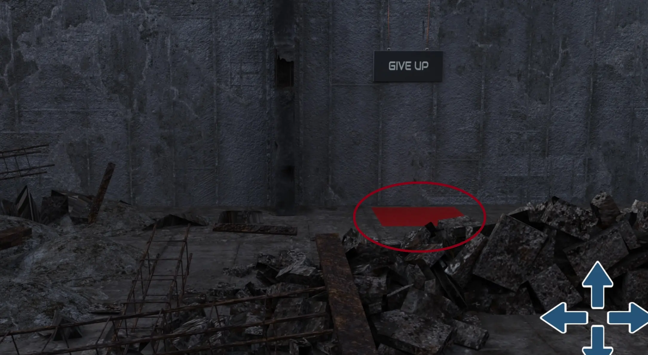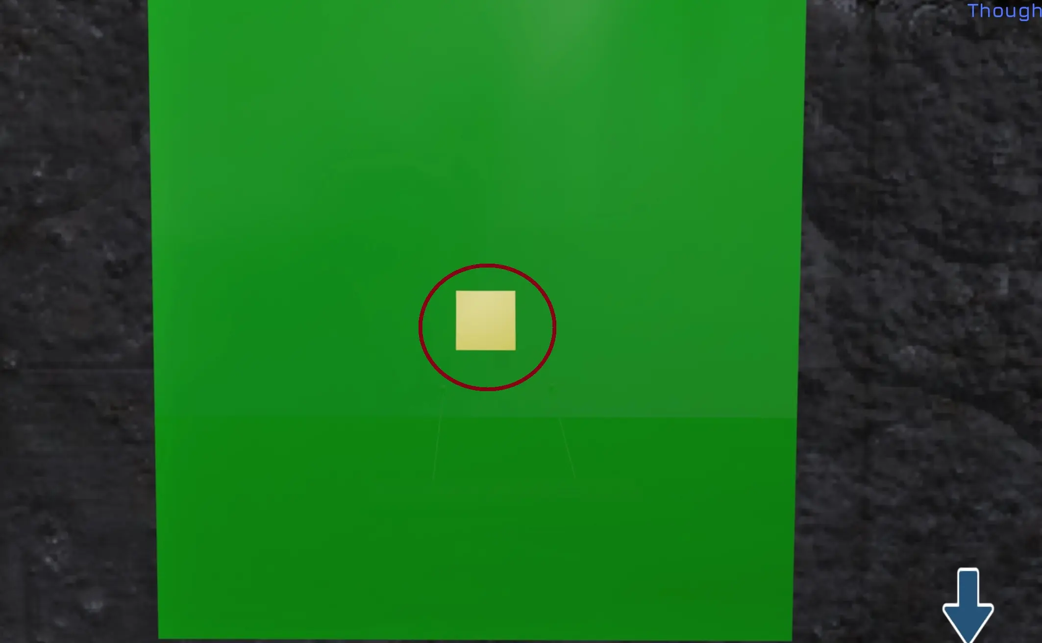 - Go back to the green square and stand on it, then use the double red arrows in the bottom-right corner of the screen again to look down.