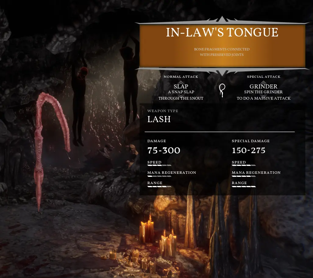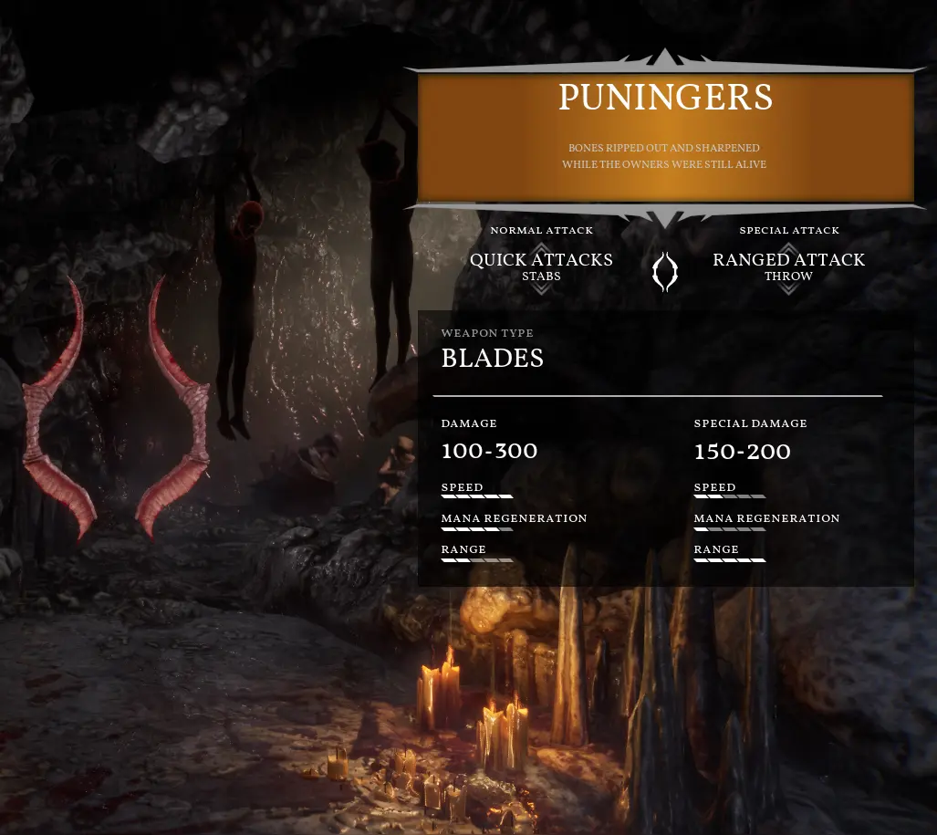It’s special ranged attack is somewhat slower but deals more damage than the dual blades (it also does not track enemies).