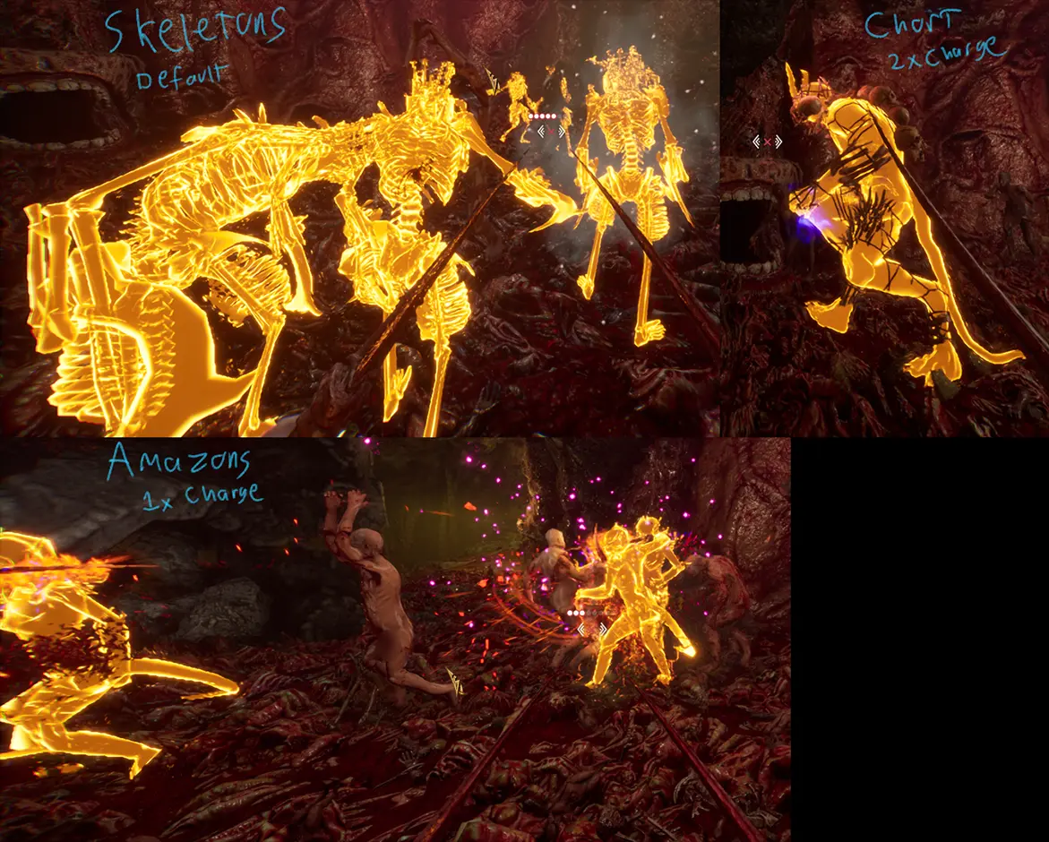 I would recommend using the Amazons as much as possible, the Skeletons die very quickly and the Chort’s AI seems to be bugged, so it rarely actually attacks, and will often just wander around aimlessly.