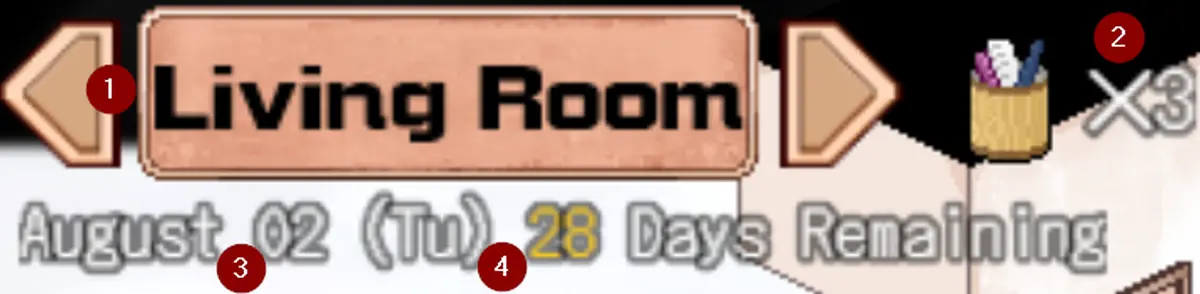 Below the girl’s status is a map of the house. You can click on the icon of a girl to jump right to their location. The Blue head is your uncle.