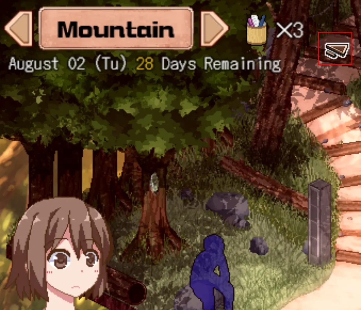 There are three different Homework assignments you must do to advance your relationships: Yui (Math), Rio (Independent Study), and Miyuki (Wash Dishes). You must be in a room associated with Home Work, the Kitchen (Dishes), Rio’s Room (Math), Yui’s Room (Independent Study). You will see a green icon with a pencil if you can do Home Work.
