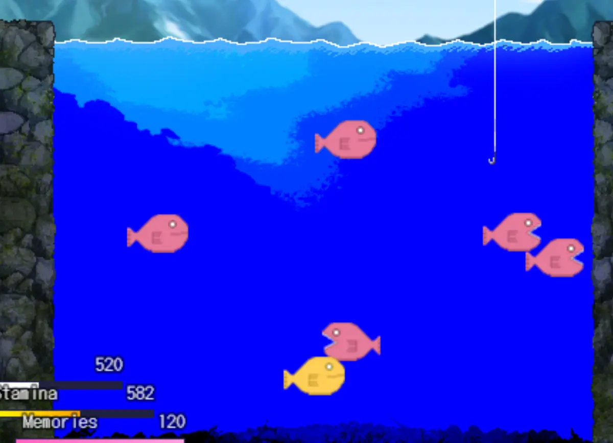 The basics of the mini game are that you have to catch the yellow fish at the bottom. The problem is that you can have your hook pass the red fish on the way down or on the way up. Combine that with losing 10 Stamina every time you set your hook and this quickly becomes very difficult. The number of red fish increase by one every time you are successful. I was able to complete the first three and just used Homework Exemption Certificates for the last two.