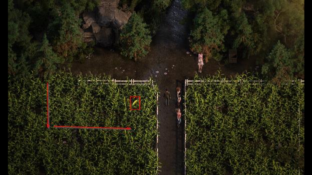 Walk behind Bale 3 and push Bale 2 back into its original position then out the door
