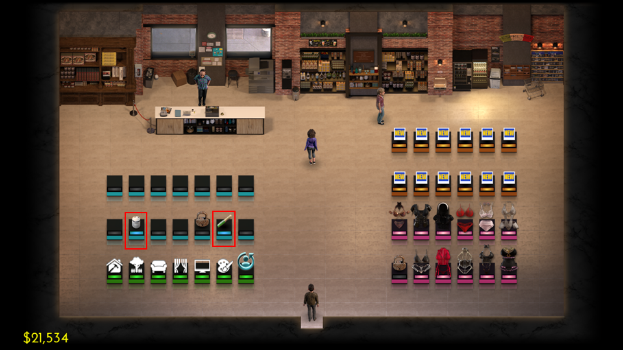 The first row, closest to the door, of items on the left improvements for your home. You have to improve your home in order to have women come over. The more sophisticated the woman the more stuff you’re going to need to purchase to have her come over for a booty call.