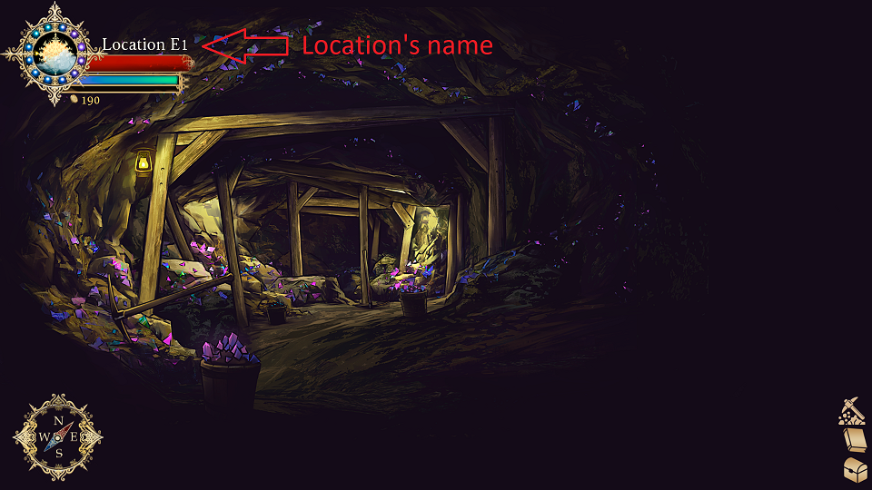 Navigation there is executed with direction arrows, plus some key locations can be accessed via imagebuttons.
