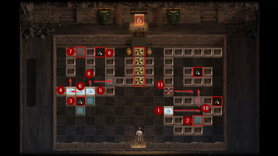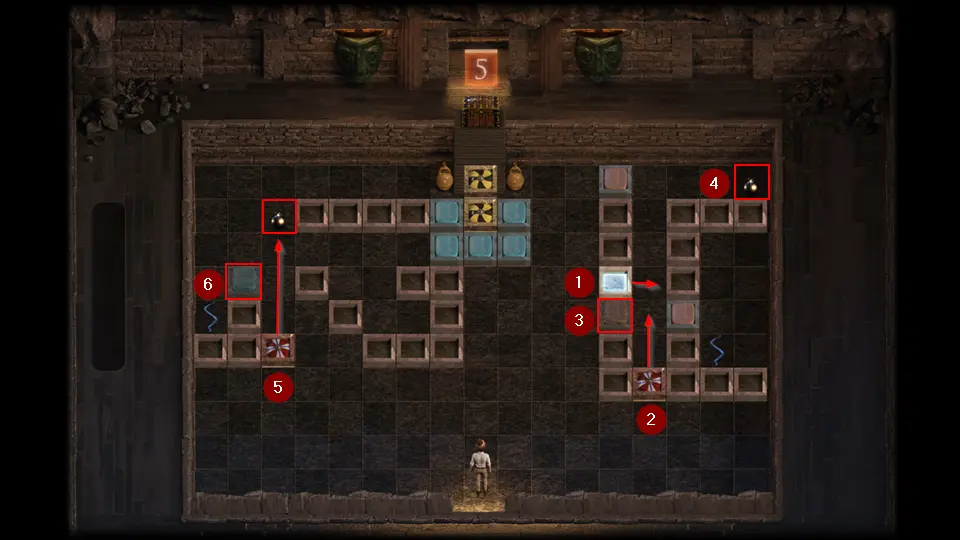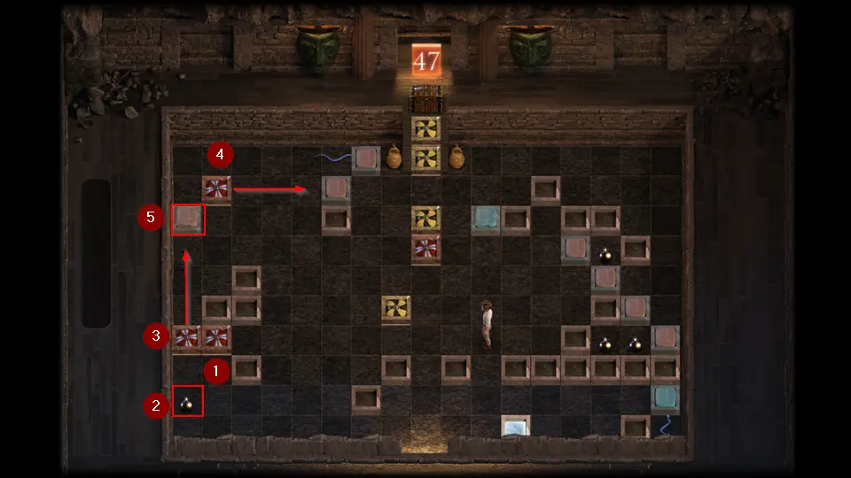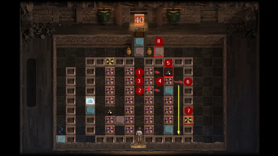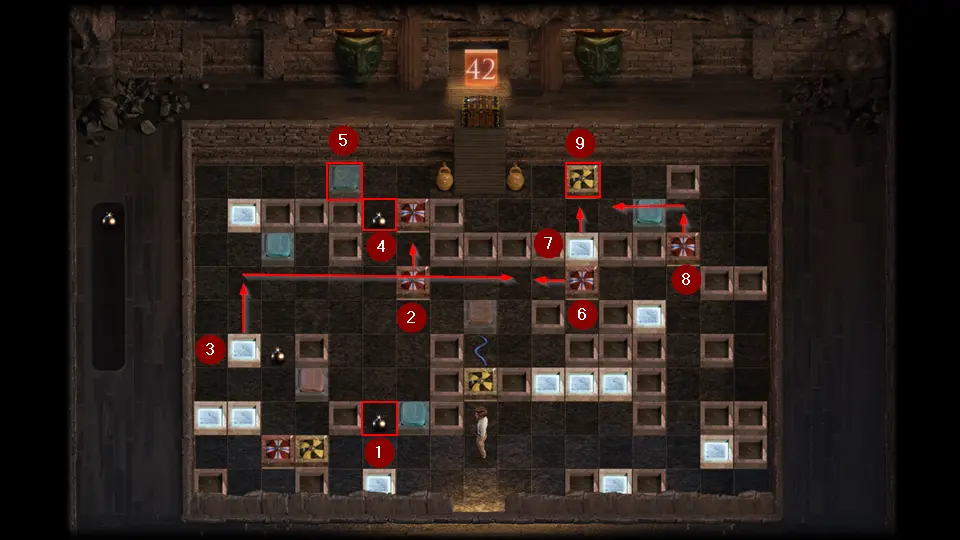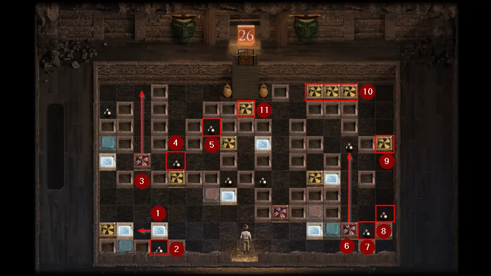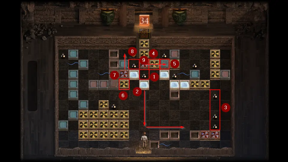 - Move the Push Block to the left of the left Bomb up 2 and right 8.