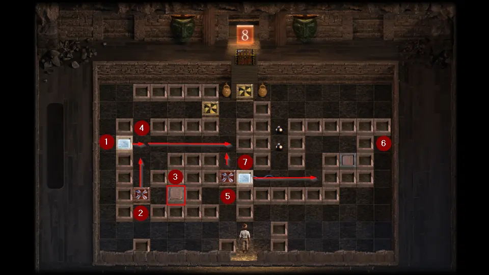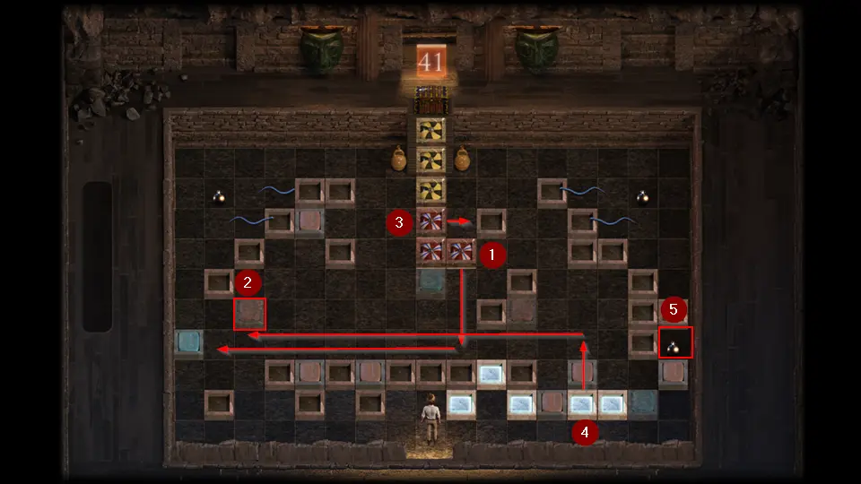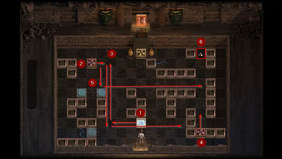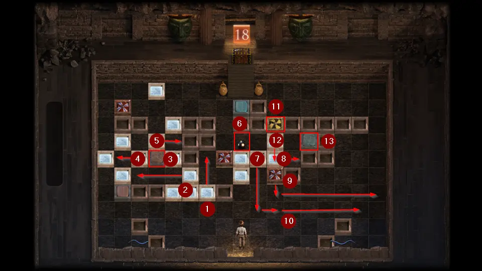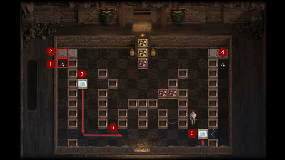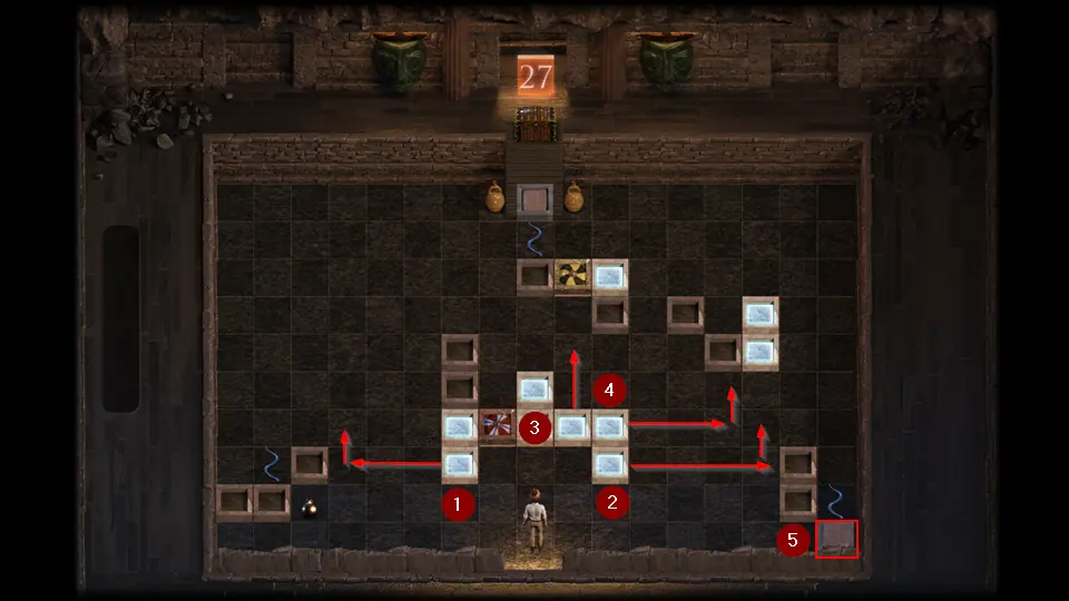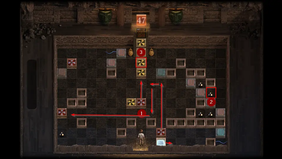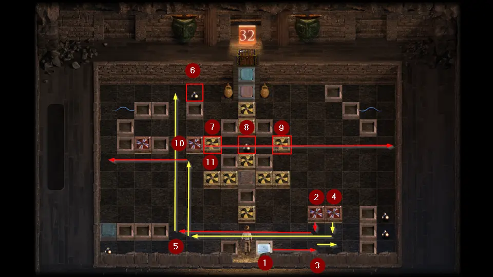- Move the Push Block to the left of the left Bomb up 2 and right 8.