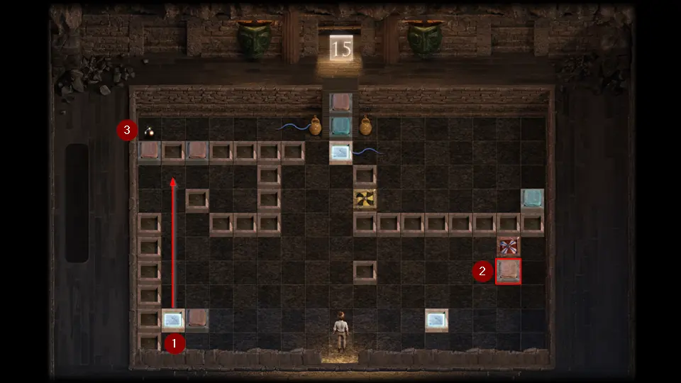 - Move the Push Block that was on top of the Push Block you just moved up 3 and left 1.