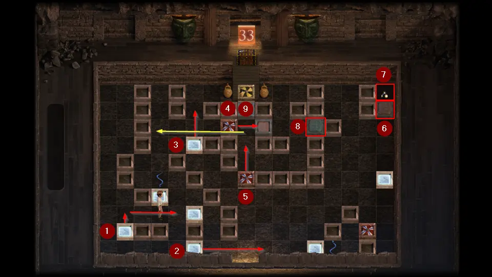 ![]() | Snakes – All of the snakes in the Ancient Temple puzzle are chasers and will try to get to you. They all move faster than you, so you have to block them. |