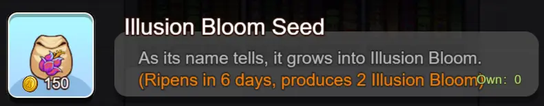 After your purchase you should head back to your farm and plant your illusion bloom, making sure to water it. Enter a cycle of sleeping, waking up, watering, and sleeping again for about 6 days. (Until its ready to be harvested)