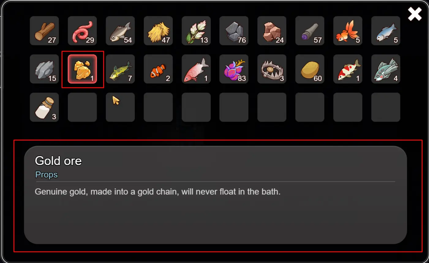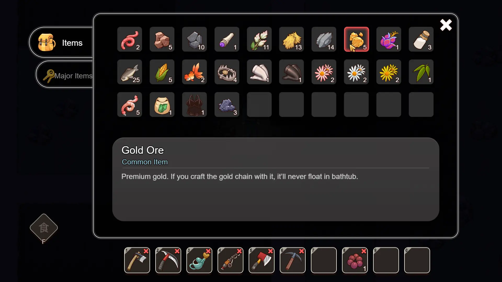 Head straight to the mine with your pickaxe in hand and mine stones until you gain a gold ore as seen below.