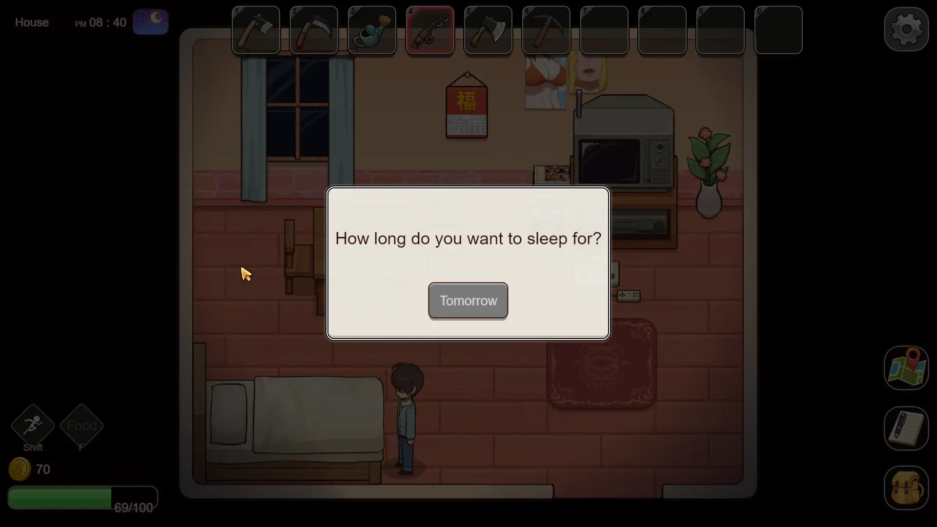With the wealth you have amassed, purchase a better scythe from the shopkeeper so that you can cut-down significantly more crops at a time, adding to your efficiency.