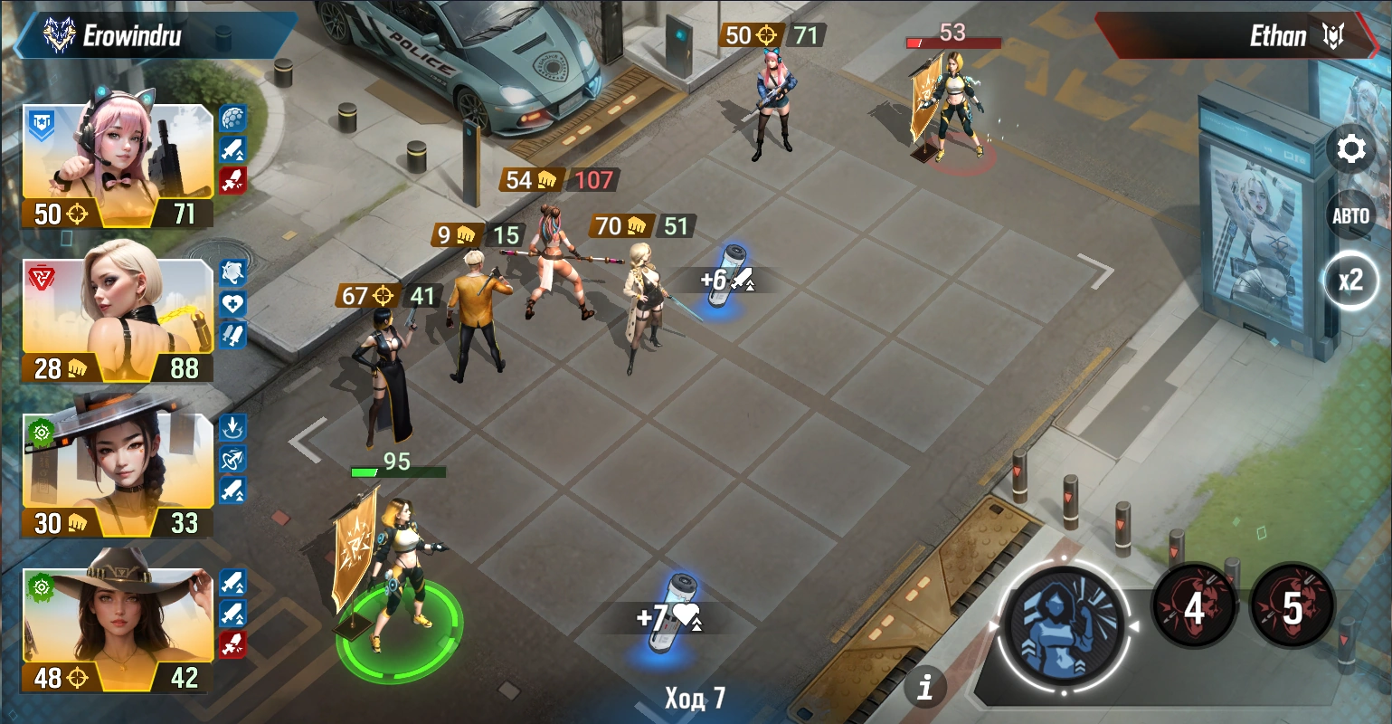 Each player’s playing field is 3×4 squares, with your protagonist in the center of the playing field. Players take turns placing cards from a pre-collected deck on the field – if there are no obstacles in the way of the “card”, in the form of other enemy units, etc., it deals damage to the enemy hero. The one who first brings the enemy hero’s health to zero wins. The scheme is familiar, long time ago, all tested and quite so sticky.