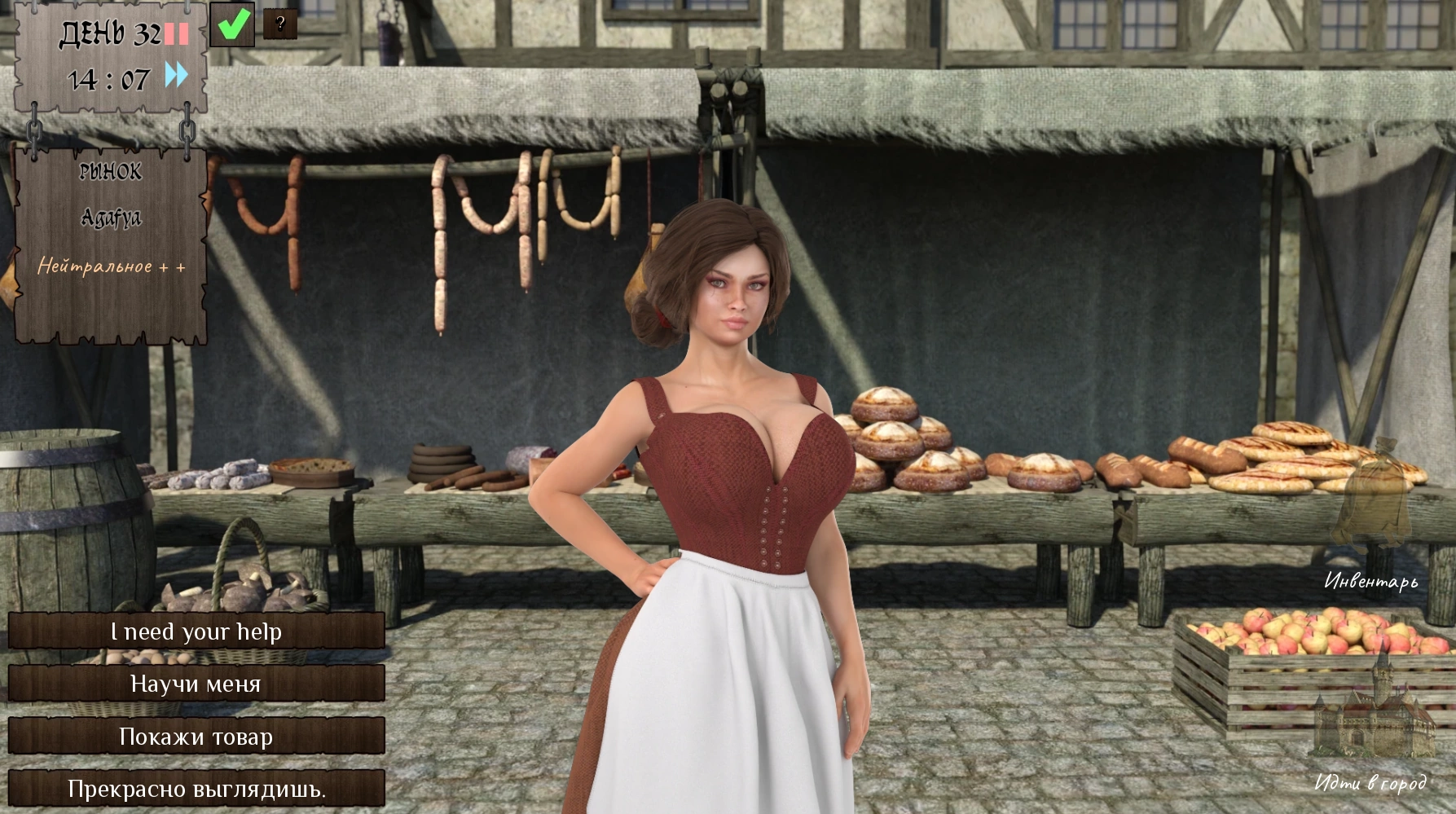 The problem is that our hero can’t do anything himself, and our slave girl will have to be taught everything, so he will have to explore the local town in search of experience in all adult pleasures.